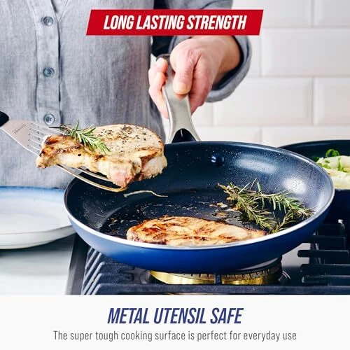 Return Policy Fast Delivery Trusted seller Cookware Diamond Infused Ceramic Nonstick 9.5" and 11" Frying Pan Skillet Set, PFAS-Free, Dishwasher Safe, Oven Safe, Blue Product Description COMPLETE SET: Includes 9.5" and 11" frying pans - versatile sizes for all your cooking needs! DIAMOND-INFUSED EXCELLENCE: 's signature ceramic nonstick coating - 5x harder and 10x longer lasting than traditional surfaces! HEALTHY TOXIN-FREE COOKING: PFAS-Free nonstick surface for worry-free, healthier meals. Cook with confidence! VERSATILE KITCHEN PERFORMERS: Oven safe for flexible cooking options. From stovetop to oven without missing a beat! WARP CONTROL BASE: Featuring a heavy-duty forged base, these extremely tough pans will tackle countless meals without warping, wobbling, or degrading over time CLEAN WITH EASE: Dishwasher safe with effortless cleanup, most messes will wipe clean off for a constant polished look. ERGONOMIC HANDLES: This set’s riveted stainless steel handles offer a sturdy, comfortable grip built for oven cooking STYLISH BLUE CHARM: Vibrant blue exteriors add a pop to your kitchen. Cookware that's a feast for the eyes and the appetite! Shipping Returns Payment Shipping Shipping is FREE to all addresses other than APO/PO boxes in the lower 48 states. All our stock ships from US-based warehouses. Shipped via USPS or UPS (depending on location and package weight) Unless stated otherwise, all orders will ship within 24-72 hours of your payment being processed. Check our feedback to see the great reviews of FAST shipping we offer. Returns Seller does not accept returns Payment We currently accept payment via eBay managed payments only. Once payment is cleared, we will dispatch your shipment within 1-3 business days. Please refer to the "Shipping" tab for more information regarding shipping speed to your destination.