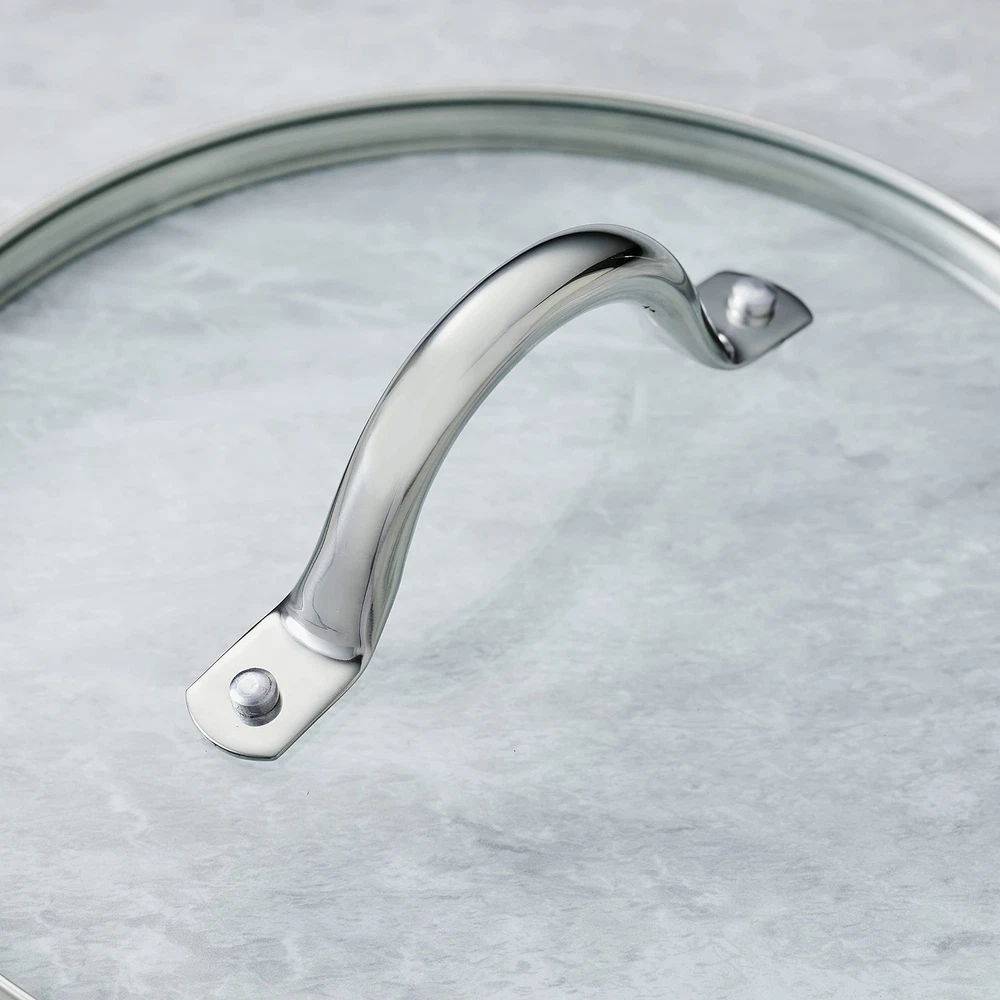 's 11-Piece Nonstick Cookware Set offers versatile pots and pans for cooking meals of every size. Featuring an attractive metallic colored exterior, this durable set is constructed of heavy-gauge aluminum for quick, even heat distribution when you want to brown, sear, braise and pan-fry. The titanium reinforced nonstick interiors are made without lead or cadmium, and give quick release to food so you can cook with less oil. Plus, it makes cleanup a snap as the cookware can be tossed in the dishwasher. Tempered glass lids allow you to monitor your cooking progress, and ergonomically designed cast stainless-steel handles are riveted for extra support when handling cookware. This nonstick cookware is compatible with gas, electric and ceramic glass cooktops and can be used in the oven up to 350° F. Heavy-gauge aluminum construction ensures long-lasting durability Compatible with gas, electric and ceramic glass cooktops Includes: 8" sauté pan, 10" sauté pan, 4-qt. deep sauté pan with lid and helper handle, 2-qt. saucepan with lid, 3-qt. saucepan with lid, 6-qt. stock pot with lid, Stainless-steel steamer basket (fits 3 qt. saucepan) Oven-safe up to 350° F / 176° C UPC83