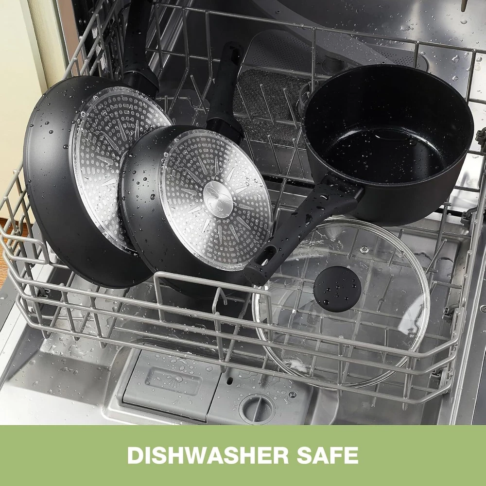 Healthy Nonstick Ceramic Cookware: Our pots and pans are crafted for a safer cooking experience, made with 100% PTFE, PFOA, and PFAS-free materials. The ceramic coating is 3X more durable, designed to resist peeling and built to last through daily use. Complete 11-Piece Set Includes: Everything you need for versatile cooking—an 8-inch frying pan, 10-inch frying pan, 2QT saucepan with lid, 4.2QT sauté pan with lid, 4.5QT casserole pot with lid, 2 multi-purpose utensils, and 1 pot protector to keep your cookware in great condition. Hassle-Free Cleaning: Our cookware is engineered with a nonstick, rivet-free surface, making clean-up incredibly simple. Just wipe it down with a paper towel or give it a quick rinse, and your pots and pans will look as good as new, even after repeated use. Cool-Touch Ergonomic Handles: The heat-resistant silicone handles are designed for comfort and safety. They stay cool while you cook, resist burning and discoloration, and offer a secure, comfortable grip. Compatible with All Stovetops: Whether you’re cooking on gas, electric, ceramic, or induction stovetops, our cookware’s high magnetic conductive stainless steel base ensures quick and even heat distribution, eliminating those frustrating hot spots. Worry-Free Guarantee: At PekGema, we’re committed to your satisfaction. If you have any issues or concerns, simply reach out to our customer service team. We’re here to make sure your experience is hassle-free.