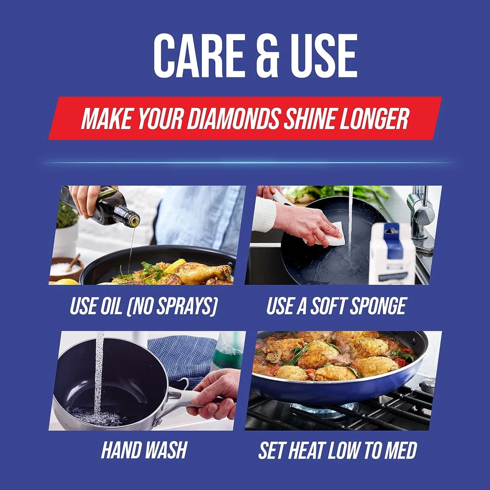 Store New Arrivals Add to Favorite View Feedback Contact Cookware Tri-Ply Stainless Steel Ceramic Nonstick, 6 Piece Cookware Pots and Pans Set, Pfas-Free, Multi Clad, Induction, Dishwasher Safe, Oven Safe, Silver Description Item model number CC003691-001 Style Pots and Pan set Capacity 1 Liters Assembly required No Number of pieces 6 Country of Origin China Has Nonstick Coating Yes Is Oven Safe Yes Batteries required No Material Diamond Infused PFAS-Free Ceramic Nonstick, Stainless Steel Handle Material Stainless Steel Model Name Triple Steel Mildew-resistant Cadmium Free, Perfluorooctane Sulfonate (PFOS) Free, Perfluorooctanoic Acid (PFOA) Free, PFAS Free, Bisphenol-A (BPA) Free, Lead Free Specific Uses For Product Sautéing, pan-frying, griddling, searing Is Dishwasher Safe Yes Item Weight 9.02 pounds Special Feature Gas Stovetop Compatible, Electric Stovetop Compatible, Induction Stovetop Compatible Color Silver Compatible Devices Gas Stovetop Compatible, Electric Stovetop Compatible Global Trade Identification Number 00885837023091 Shape Round Recommended Uses For Product Sauteing, searing, browning, and compatible with various stovetops including induction Finish types Ceramic Nonstick Included Components set includes: 8” frying pan/skillet, 11” frying pan/skillet, 3.5QT sauté pan with glass lid, a nylon slotted turner, and a nylon solid spoon. Product Care Instructions Dishwasher Safe Size 6 Piece Cookware Pots and Pans Set SET INCLUDES: 8” frying pan, 11” frying pan, 3.5QT sauté pan with glass lid, a nylon slotted turner, and a nylon solid spoon. TRIPLE STEEL CONSTRUCTION: Three-layer tri-ply stainless steel bodies deliver even heating for incredible browning, searing, and sautéing results 5X HARDER COATING & 10X LONGER LASTING: Our diamond-infused ceramic nonstick coating is 5x harder and lasts 10x longer than traditional nonstick, metal utensil safe TOXIN-FREE: Blue Diamond's healthy ceramic nonstick coating is free of PFAS, PFOA, lead, and cadmium for worry-free cooking VERSATILE COOKTOP COMPATIBILITY: Suitable for all stovetops, including induction, for maximum cooking flexibility EXTREME HEAT RESISTANCE: Mirror-finished stainless steel bodies are oven and broiler safe up to 600°F, glass lids up to 425°F COOL-TOUCH HANDLES: V-shaped cutouts in the stainless steel handles ensure they stay cool during stovetop use SPACE-SAVING DESIGN: Angled handle shape allows for easy stacking and storage EASY TO CLEAN: Dishwasher safe for convenient cleanup, though most messes wipe away effortlessly Shine on the stovetop with Blue Diamond’s Triple Steel collection. Blue Diamond Triple Steel features two stainless steel layers surrounding an aluminum core that extends throughout the pan to deliver responsive performance with unbelievable power. Our unique Midnight Diamond coating is an eye-catching update that works with the 3-ply body to promote fast and even heating, incredible durability, and dazzling results on all stovetops, including induction. Metal utensil safe, Blue Diamond’s diamond-infused coating is 5x harder and 10x longer lasting than traditional nonstick, and best of all they are toxin free! No PFAS, PFOA, lead, or cadmium! The stainless steel V-cutout handles keep the collection comfortable on the stovetop while their unique angle makes these pans stackable for easy storage. Glass lids provide an easy view at any meal in progress and optimal for steaming and grease protection. Dishwasher safe. Oven safe to 600°F, glass lids to 425°F. The Blue Diamond Triple Steel nonstick stainless steel cookware set includes: 8” frying pan/skillet, 11” frying pan/skillet, 3.5QT sauté pan with glass lid, a nylon slotted turner, and a nylon solid spoon. ABOUT US We offer the best prices around on high quality products. Our E-store includes media such as books, movies, music and games while offering electronics, toys, sporting apparel, clothing, tools, general home, garden items and more. SHIPPING We are always working hard to ensure your package arrives as soon as possible. Please understand that some factors like weather, high postal traffic, and the performance of shipping companies are outside of our control. We offer free shipping to the lower 48 states and ship within 2 business days of payment, usually sooner. We do not accept P.O. Boxes. Please provide a physical address. For shipping outside of the continental USA, we only use eBay's Global Shipping Program.The item is shipped to KY and then sent to the rest of the world. International customers are responsible for all duties and taxes. Continue to check out in order to calculate costs for shipping the item to your country. Messages regarding eBay's Global Shipping Program MUST be directed at eBay EXCLUSIVELY. RETURNS We offer a 30-Day Return Policy on items which you are not completely satisfied with. You have the option for a full-refund or an exchange of the item. No returns are available on items shipped outside of the USA. PAYMENT We accept PayPal. CONTACT US This page content is yet to come Please ad us to your favorite seller and visit again later Thank You CUSTOMER SATISFACTION We try our very best to make sure every customer is completely satisfied. If there's a problem, message us! We're happy to help. WE ACCEPT Copyright © 2021 AutoDS. | All Rights Reserved