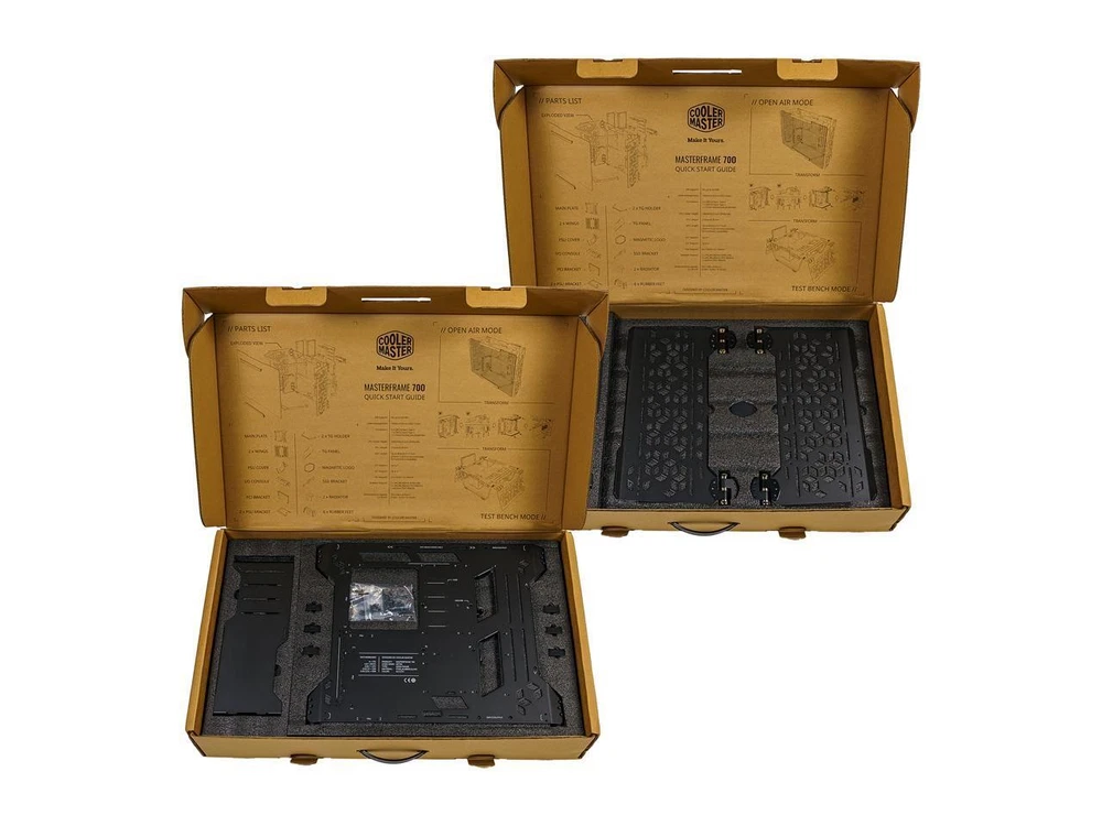 Learn more about Cooler Master MCF-MF700-KGNN-S00 Model Brand Cooler Master Series MasterFrame 700 Model MCF-MF700-KGNN-S00 Details Type Open-Air ATX Color Black Case Material Steel / Tempered Glass With Power Supply No Power Supply Mounted Bottom Motherboard Compatibility ATX / E-ATX / Micro ATX / Mini ITX / SSI EEB Side Panel Window Tempered Glass Front Panel Expansion Internal 3.5" Drive Bays Up to 4 x Combo 3.5" / 2.5" Internal 2.5" Drive Bays Up to 7 Expansion Slots 8 Front Panel Ports Front Ports 2 x USB3.2 Gen1 Type A1 x USB3.2 Gen2 Type C 1 x 3.5mm Headset Jack (Audio+Mic) Cooling System Fan Options Right Side: 3 x 120mm / 2 x 140mmLeft Side: 3 x 120mm / 2 x 140mm Radiator Options Top: Up to 360/420mmRight Side: Up to 280/360mmLeft Side: Up to 280/360mm Dimensions & Weight Max GPU Length Up to 450mm/17.71 inch310mm / 12.20 inch recommended for maximum compatibility Max CPU Cooler Height 158 mm Max PSU Length 210 mm Dimensions (H x W x D) 16.14" x 12.05" x 27.64" Weight 26.23 lbs. Additional Info Features Premium Variable Friction Hinges: Heavy duty hinges hold the side wings to the mid-frame and allow for smooth repositioning at any angle depending on the user’s needs. Allen keys are included to adjust the tension of the hinges to make it easier to move or allow the side wings to hold heavier parts. This level of flexibility is a key factor for users creating extremely unique water-cooling loops and setups.Open Air Design: The open-air nature of the design provides unrestricted access to fresh air to all components in the system. The optional fan mounts allow to further guide the airflow path to a specific intake/exhaust direction, thus preventing performance-robbing heat recirculation.Un-matched Hardware Support: For its size, MasterFrame 700 sports an unmatched level of hardware compatibility. It is designed to fit any component available, even oversized ones. Users can mount up to SSI-EEB motherboards, multiple power supplies and multiple radiators at the same time and still have room for triple slots GPUs and storage.Extreme Water-Cooling Support: Designed with water-cooling in mind, MasterFrame 700 provides a flexible pump and reservoir mounting location and support for multiple triple-fan radiators.Test Bench Mode: Thanks to its modular design, MasterFrame 700 can lay down horizontally and transform into an ultra-featured premium Test Bench. Cooling and power components are installed out of the way of the motherboard area for interference-free installation of components.Panoramic Tempered Glass: The oversized panoramic tempered glass offers a greater viewing angle on the components of the system and, together with hardware-centric design of MasterFrame 700, it is the perfect way to showcase high-end components and custom cooling solutions.Built-In VESA Mount: The MasterFrame 700 can be wall mounted thanks to the inclusion of a 100mm x 100mm VESA mount. Perfect to showcase custom loops and high-end components. It is highly recommended Package Content MasterFrame 700 Install Tool Kits Manual Shipping Enjoy fast and reliable shipping when you buy your products from Newegg. Our ordering and shipping services are among the best in the industry due to short processing times and a variety of shipping methods. Your orders are packaged at one of the many local warehouses across the country, minimizing delivery times and ensuring you get your purchases as soon as possible. Payments Newegg has partnered with PayPal to offer you the very best in payment services. PayPal allows you to buy with confidence, knowing your payments are processed quickly and securely with state-of-the-art encryption technology. Return Returns are subject to restocking fees of 15% - 30% of the purchase price and return shipping fees. For products that are eligible for return for replacement, the return shipping labels are free for returns for replacement of the same item within the applicable return policy period. Newegg does NOT charge for restocking fees or return shipping labels for returns of defective products, or if you received the wrong product, the product did not match what was shown on the Site, or we made some other shipping error, provided the item is returned within its return policy period, and in accordance with the Return Policy. For international buyers, items shipped internationally do not qualify for manufacturer warranties.