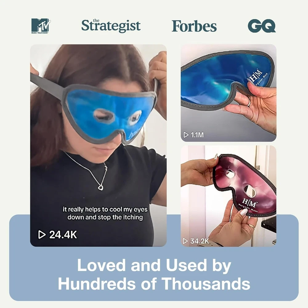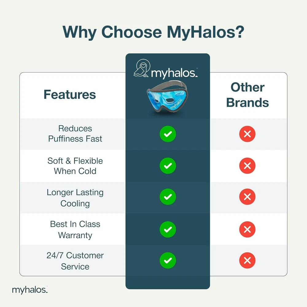 Cooling Eye Mask - Reusable Gel Eye Mask Cold Pack - Our Ice Eye Mask Soothes Puffy Eyes & Dark Circles - Relieve Your Headaches & Sinus Pain with Cold Eye Mask & Eye Gel Mask Therapy - Halos 【Uses】Our gel eye mask can be used hot or cold to provide soothing migraine, headache & eye strain relief. These eye masks for dark circles and puffiness also work as cold ice packs for eyes to relieve tired or irritated eyes from allergies. Our cooling eye masks provide drug- free relief from bruising pain and can be used as an eye ice pack mask after surgery. It also has therapeutic benefits and can be used as a calming & cooling sleep mask 【Easy To Use】For a cold compress for eye pain, refrigerate or freeze eye mask for at least 1 hour before use. One size fits all and is suitable for both men & women. Simply fix the adjustable straps of the gel face mask at your preferred comfort. Once secure, lie down, relax and allow your reusable eye mask to work. 【Why Choose Us?】Unlike your average eye mask for puffiness, our cool eye mask is filled with more gel so it ll stay hot or cold for longer (up to 30 minutes). This eye cooling mask is made from soft material which is latex-free and easily conforms to the contours of your face, allowing more contact with your eyes, cheeks, forehead, nose and temples. Also comes with a free travel case 【Why Trust Us?】We have put s of work and research into designing the ultimate cold mask that works as an eye mask for dark circles, headache ice pack or puffy eyes treatment. Our cold face masks are designed for comfort, effectiveness and convenience. Manufactured under strict quality control, these ice masks for eyes are designed to resist tears and leaks, providing a safe and sterile healthcare product We are constantly striving to offer a gold standard customer service and we re confident you ll love the HM cooling gel eye mask as much as we do, but if for any reason you are unhappy with our product, ? we offer a 100% satisfaction promise