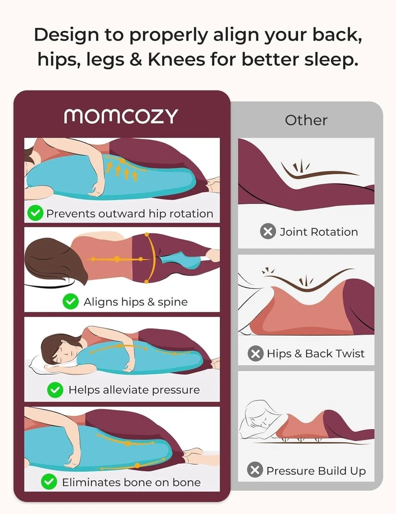 This maternity pillow is a game-changer for side sleepers! The cooling cover keeps me comfortable all night, and the J-shape provides perfect support for my back, hips, and belly. The plush filling is soft yet supportive, making it easy to switch positions without losing comfort. I love how it cradles my body, relieving pressure points and helping me sleep deeper. The quality is fantastic, and it stays cool even on warmer nights. Highly recommend for expecting moms or anyone needing extra support!