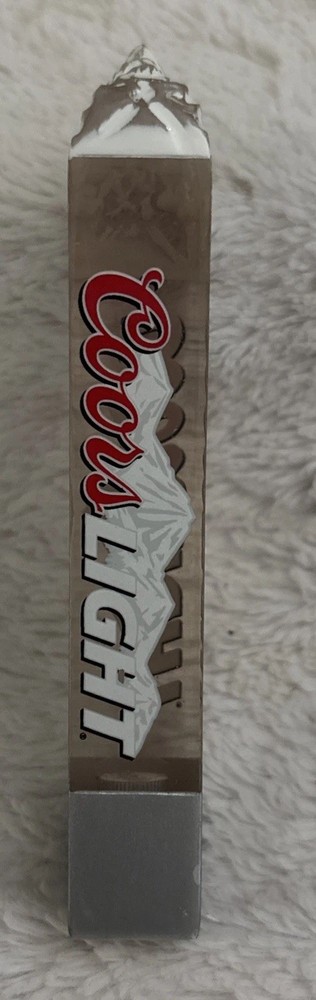 The Coors Light Tap Handle is a small 6-inch knob designed for use with beer taps. Featuring the Coors brand logo, this collectible piece is perfect for enthusiasts of breweriana items. Made to serve as both a functional tap handle and a decorative piece, this item is a must-have for any beer lover's collection. There are some chips on tapper. See photos this has been used