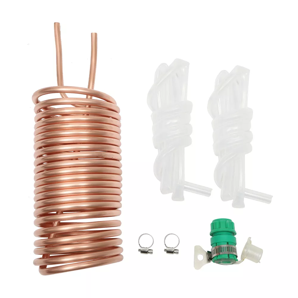 Copper Immersion Wort Chiller Coil Homebrew for Beer Brewing w/ Silicone Tubing Description Copper Immersion Wort Chiller Coil Homebrew for Beer Brewing, Garden Hose Fitting Description Beer Is a Classic Summertime Drink, and Cooling Coils Are the Key Technology That Allows the Beer to Cool. Beer Needs to Be Cooled Quickly During Production and Storage to Ensure Taste, Aroma, and Quality. Our Copper Immersion Wort Chiller Quickly Cools the Boiled Wort and Brings the Wort to the Proper Temperature for Yeast Inoculation (Approximately 86°F), Thus Ensuring That the Beer Is Stored and Shipped at the Proper Temperature. Key Features High-quality Material: This Product Is Made of Food-grade Red Copper and Silicone Tube so That You Can Use It for Beer Cooling with More Peace of Mind. High Cooling Efficiency: Red Copper Has Excellent Thermal Conductivity, Heat Absorption, and High-efficiency Heat Exchange, Thus It Can Effectively Reduce the Cooling Time. It Cools 5.02 Gal of Wort from 210.2°F to 84.2°F in About 10 to 25 Minutes (Depending on Tap Water Temperature and Flow Rate). Also, the Coil Structure Has a Large Contact Area, Resulting in Better Cooling Effect. Restore Beer Flavor: This Product Does More than Just Maintain Beer Temperature, It Is Also Effective in Maintaining the Flavor, Aroma, and Quality of Beer. by Using It, You Will Be Able to Obtain a Fuller, Fresher, Clearer, and Sweeter Beer Taste. Easy to Use: All You Need to Do Is Connect the Cooling Tray to the Tap and Drain the Water at the Same Time. It Quickly Cools Beer and Other Beverages by Water Circulation. Even First-time Beer Brewers Can Use It Correctly. Easy to Store: the Compact Structure (3.93*13.87 Inches) and Bendable Silicone Hose Make It Easy to Store. It Won't Take up Too Much of Your Storage Space. Easy to Clean: the Smooth Surface and Simple Structure of the Product Make It Easy to Clean. You Only Need Detergent and a Rag to Clean It. Ideal Gift: with Its Efficient Cooling Performance, This Product Is an Ideal Gift for Beer Brewing Enthusiasts and Friends. Good Customer Service: Communication Is the Best Way to Solve Problems. If You Encounter Any Problem After Purchase, Please Contact Us in Time Before Opening or Unpacking the Box. We Will Do Our Best to Solve the Problem for You. Details Garden Hose Fitting: the Universal Joint Can Be Matched with a Variety of Faucets, Thus Providing More Convenience for Your Use. Hose Clamp: It Can Connect the Silicone Hose with the Cooling Hose Closely, Thus It Is Not Easy to Leak. Application This Immersion Wort Chiller Is Used for Cooling Beer or Malt. the Standard Garden Hose for This Product Allows You to Brew Beer Outdoors, or You Can Connect It to Your Laundry Sink Faucet As Your Cooling Water Source. Specification Material: Copper, Silicone Color: Gold Assembly Required: Yes Cooling Temperature: Approx. 30°C/86°F Gross Weight: 1.8kg/ 3.97 Lbs Net Weight: 1.5kg/3.31 Lbs Product Size: 20*10 Cm/7.87*3.94 in Coil Height: 35cm/13.78in Copper Tube Inner Diameter: 0.45cm/0.18in Copper Tube Outside Diameter: 0.8cm/0.31in Silicone Hose Inner Diameter: 0.8cm/0.31in Silicone Hose Outside Diameter: 1.2cm/0.47in Silicone Hose Length: 1.5m/4.92ft Package Size: 42*17*11 Cm/16.54*6.69*4.33 in Package Included 1 * Copper Immersion Wort Chiller 1 * Garden Hose Fitting 2 * Hose Clamps 2 * Silicone Hoses Notes This Product Can Be Sterilized by Boiling in the Wort for About 15 Minutes. Please Allow the Slight Color Difference Caused by the Shooting Light and the 1-3 Cm Error Due to Manual Measurement, and Make Sure You Do Not Mind Before Ordering. Payment Delivery details Terms of sales About us Contact us Payment We accept ebay payment 。 Fees such as import duties, taxes are not included in the item price or shipping costs. These charges are the buyer's responsibility. Delivery details Shipping: 2-9 working days to: USA Terms of sales We maintain high standards of excellence and strive for hundred percent customer satisfaction. Feedback is very important to us. We hope that you contact us immediately before you give neutral or negative feedback, so that we can address your concerns. It is impossible to address issues if we do not know about them! About us Your satis faction is our ultimate goal. We work hard to earn your trust and future business. Our certified technicians have tested each item before shipping. The unit comes with 1 year limited warranty on all manufacturing defects. a) If you receive a defective item, you may return it or ask for a discount. Please contact us within 14 days after you receive the package. b) What you returned must be intact and in its original packaging as re? u. Customer is responsible for shipping costs of the returned item. c) We will cover the cost of shipping back t with the shipping rate indicated in the registration page. We will send you a new unit or refund the full payment you paid. Thank you. Contact us Business Hour Business Hour: Monday To Friday: 8:30 AM to 5:00 PM (Beijing China time) Due to time zones, our reply to your questions may not be immediately. But within above working time, we will reply your email within 24 hours. If it's non-workdays, please kindly be patient and wait till Monday. Please contact us with ebay message. Please feel free to contact us if you have any questions. Monday To Friday: 8:30 AM to 5:00 PM (Beijing China time) Due to time zones, our reply to your questions may not be immediately. But within above working time, we will reply your email within 24 hours. If it's non-workdays, please kindly be patient and wait till Monday. Please contact us with ebay message. Please feel free to contact us if you have any questions. On Feb 5, 2025 at 18:47:31 PST, seller added the following information: