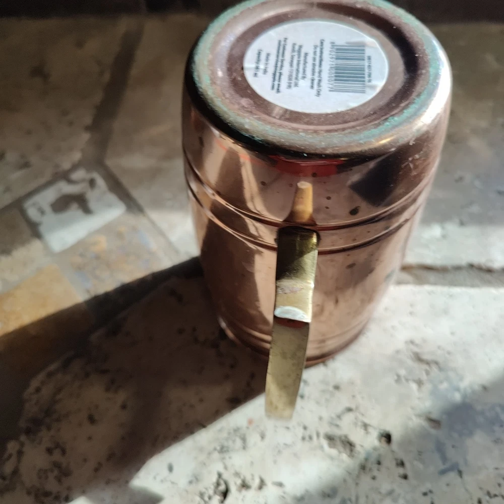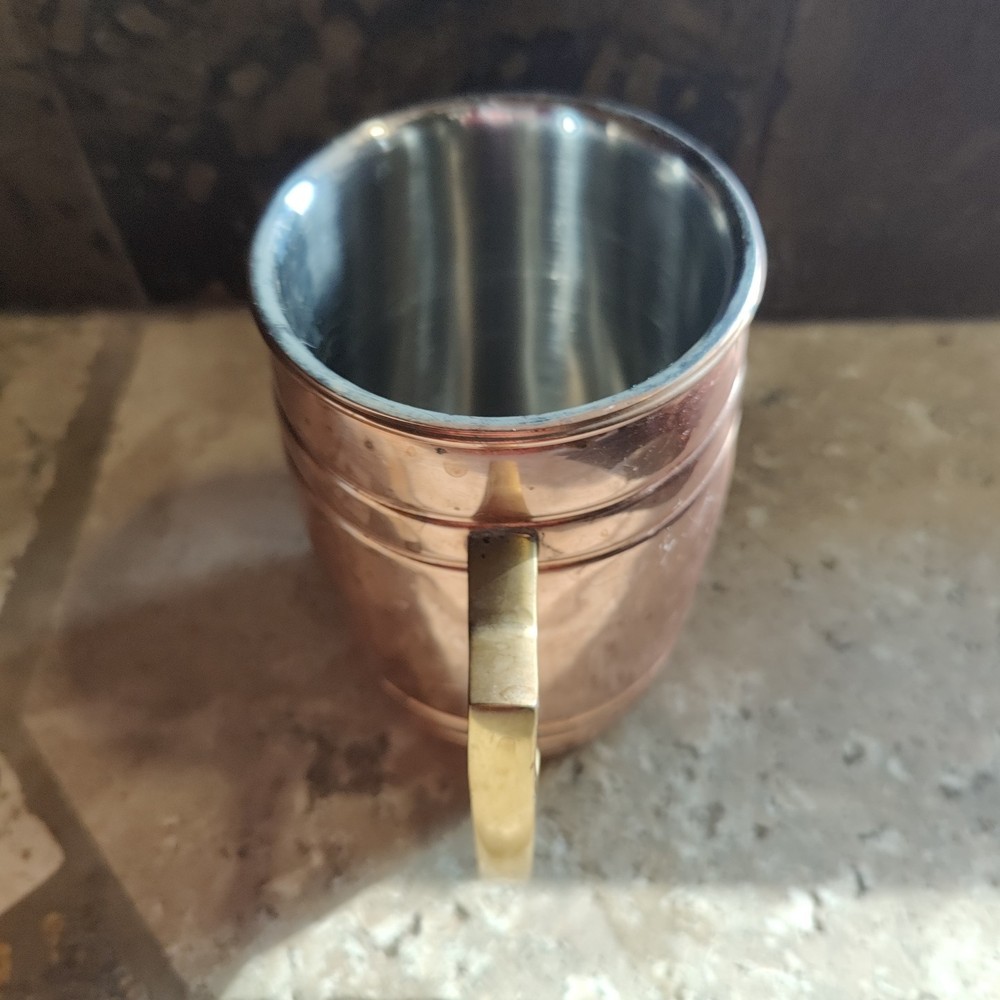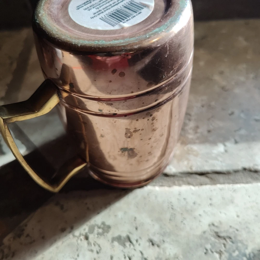 Elevate your beverage experience with the Magppie Copper Plated Aluminum Moscow Mule Mug. Designed to deliver both style and functionality. The mug is preowned showing wear including scratches/buffs/patina.
