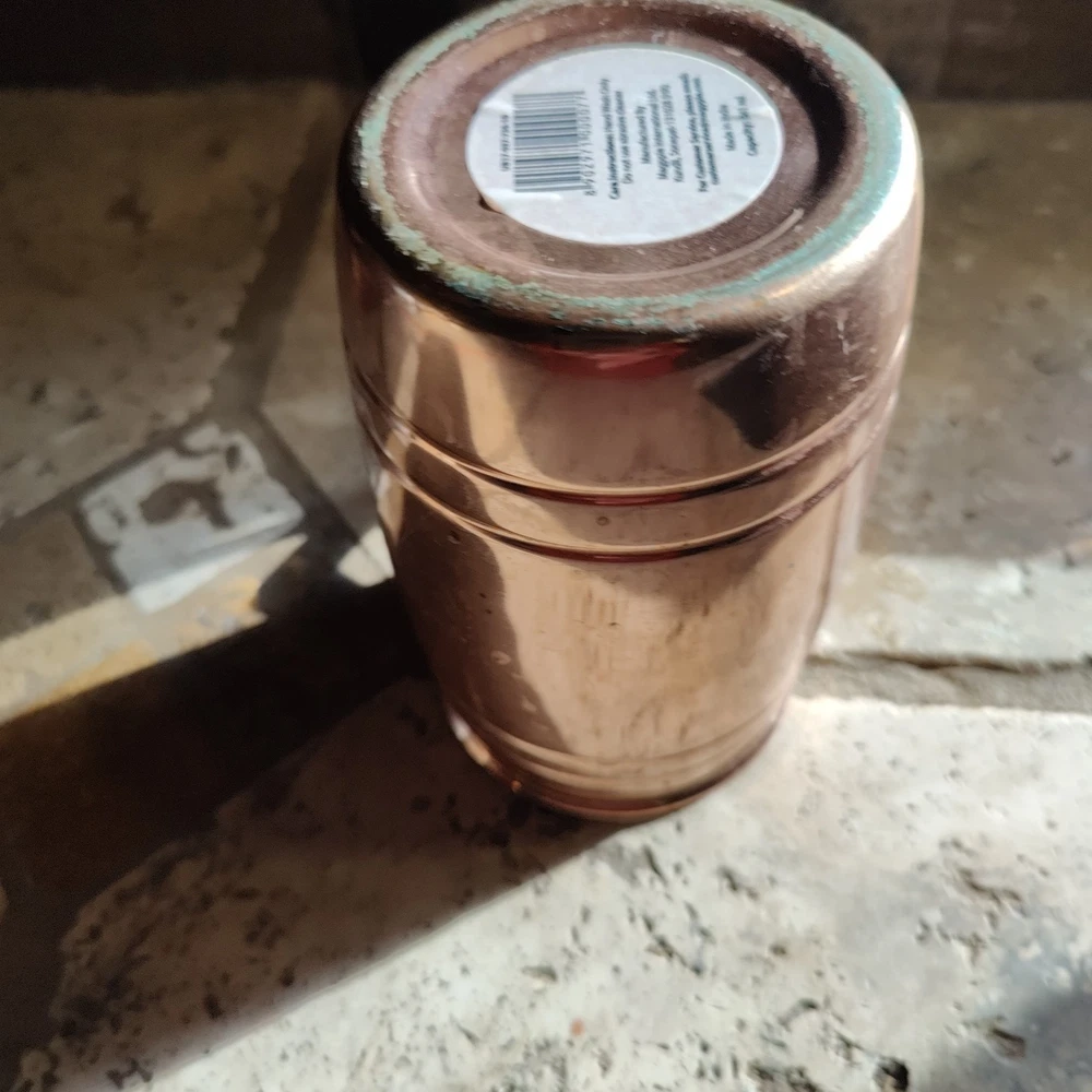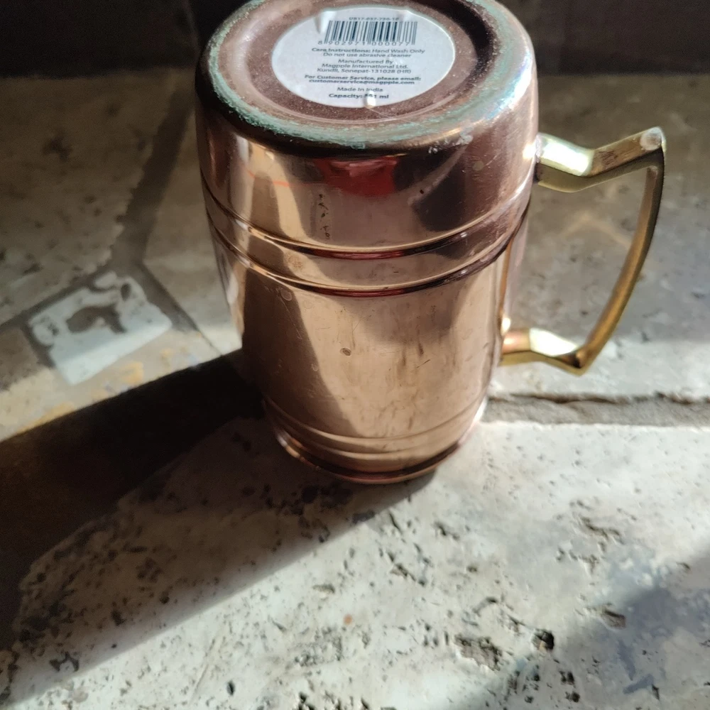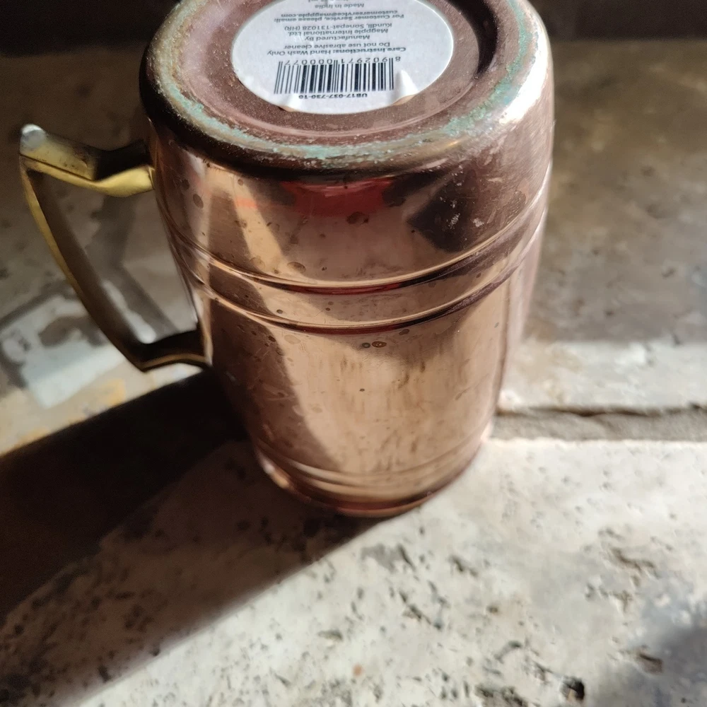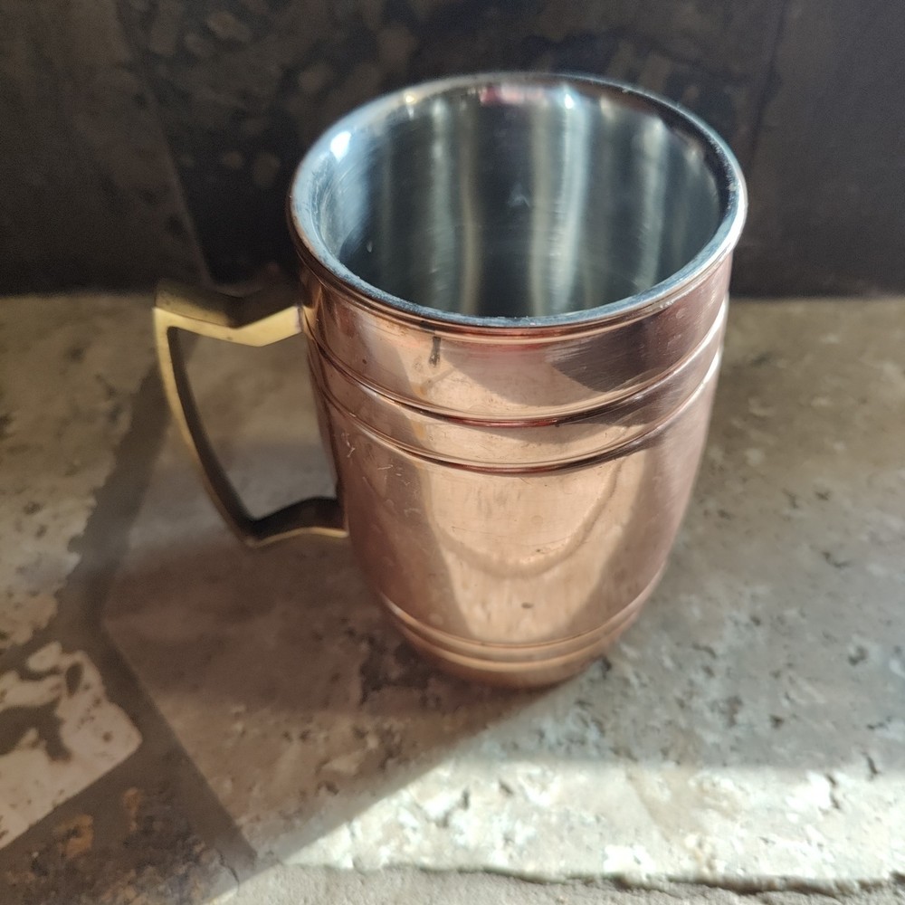Elevate your beverage experience with the Magppie Copper Plated Aluminum Moscow Mule Mug. Designed to deliver both style and functionality. The mug is preowned showing wear including scratches/buffs/patina.