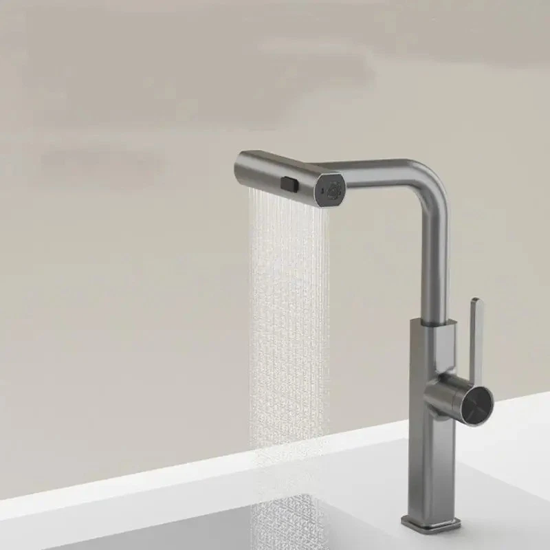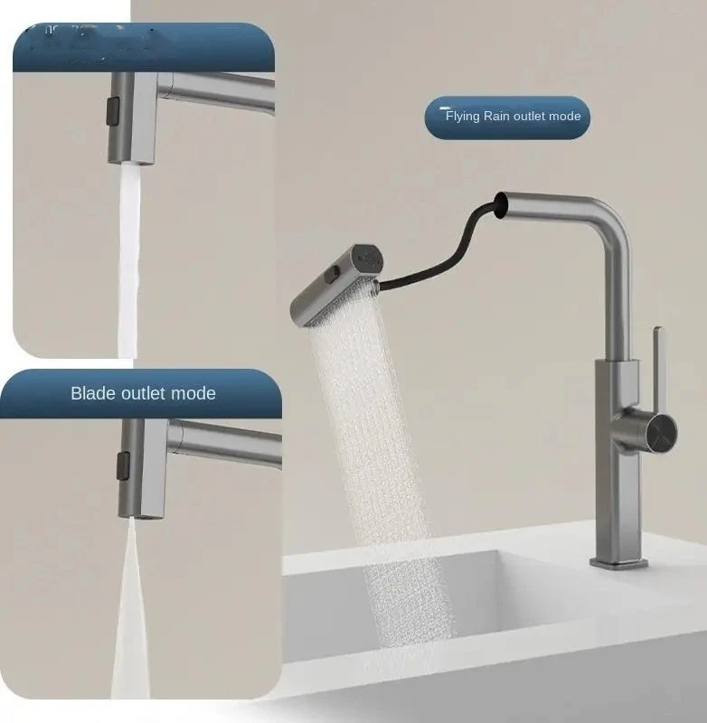 Product information: Operating temperature: 120 Material: Copper Purity: 59 Copper Specifications: Silver electroplated/copper pagoda flying rain pullout faucet, gun Gray/copper pagoda flying rain pullout faucet, silver electroplated/copper flat three-way Flying Rain pullout faucet, gun Gray/copper flat three-way Flying Rain Pullout Faucet Style: modern simplicity Packing list: Faucet*1 Product Image: