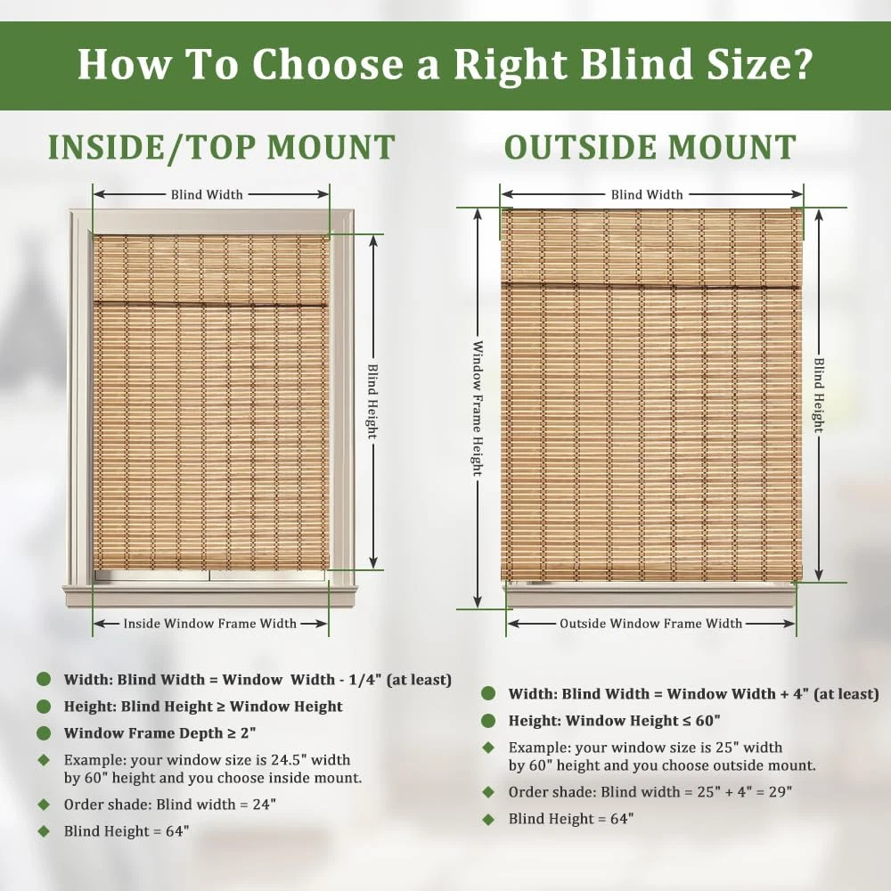 Store New Arrivals Add to Favorite View Feedback Contact Cordless Bamboo Blinds, Light Filtering Roller Shades, Natural Roman Shade, Easy to Install for Windows, Door, Patio, Bedroom, 32" W X 64" H, Natural Description Item model number DNBLJ12JQ712 Closure Type Cordless Room Type Bedroom, Living Room Size 32"W x 64"H Number of Items 1 Mounting Type Inside Mount, Outside Mount Control Type Cordless Color Natural Pattern Solid Product Dimensions 64"L x 32"W Material Bamboo Water Resistance Level Not Water Resistant Shape Rectangular Item Weight 5.24 pounds Operation Mode Manual Number Of Panels 1 Opacity Semi-Sheer Special Feature Light Filtering Included Components User Manual, Mounting Hardware 【NATURAL BAMBOO BLINDS】 Our bamboo roller shades are made of 100% natural bamboo, and each piece of bamboo slats will be hand-woven together, natural and beautiful, breathable. Small gaps between the strips filter light effectively to make sunlight & moonlight gentle and romanic. SEEYE Cordless bamboo blind is strong, durable and non-toxic. Even when exposed to direct sunlight for a long period of time, window roman blinds are not prone to fading or damages. 【CORDLESS ROMAN SHADE】 After hundreds of tests, the innovative cordless lifting system makes the natural roman blinds easier to operate. Our bamboo roman shades utilizes a pulley system that allows you to pull down or push up the bottom wood rail to get your desired height. The cordless design is safer for kids and pets. All cordless bamboo shades are designed with baffles to hide the cordless mechanism and fittings and provide a seamless look. 【EASY TO MAINTAIN】 Daily cleaning only requires a gentle wipe with a slightly damp rag. Bamboo roman shades for windows are perfect for doors, patio, bedrooms, living rooms, offices and other spaces. And it can be applied to most home styles such as rustic, farmhouse and bohemian. NOTE: Please DO NOT put the bamboo blinds window shades in a humid environment for a long time, otherwise it will shorten its service life. 【SIZE OPTION】 32" W x 64 " H - Natural, height adjustable from 0 to 64 inches. For INSIDE MOUNT, 2" window frame depth required, bamboo blinds width should be 1/4" shorter than window width. For OUTSIDE MOUNT, bamboo shades requires 4" wider and 4" longer than the window. 【EASY TO INSTALL】 Light Filtering Bamboo Roman Blinds include all installation accessories, it’s easy to install with common household tools. We also provide detailed instructions and instructional videos to guide you through the installation process. If you encounter any problems, our customer service team is always ready to help you. Product Description Add to Cart Add to Cart Add to Cart Customer Reviews 4.7 out of 5 stars 111 4.4 out of 5 stars 118 4.2 out of 5 stars 46 4.2 out of 5 stars 98 4.3 out of 5 stars 22 4.6 out of 5 stars 325 Price $37.99 $ 37 . 99 $34.99 $ 34 . 99 — — — $16.99 $ 16 . 99 Shading Ability Adjustable Shading Adjustable Shading Adjustable Shading Adjustable Shading 99% Blackout 85% Light Filtering Size Width: 20"-44" Length: 64" Width: 18"-44" Length: 64" Width: 18"-44" Length: 64" Width: 23.6"-43.3" Length: 90" Width: 20"-44" Length: 79" 60" x 18" 27" x 24" 27" x 36" Color Natural Bamboo Brown, White White Grey, White Grey White & Black Cordless ✔ ✔ ✘ ✘ ✘ ✘ Fabric Bamboo Aluminum Aluminum Polyester Polyester Polyester ABOUT US We offer the best prices around on high quality products. Our E-store includes media such as books, movies, music and games while offering electronics, toys, sporting apparel, clothing, tools, general home, garden items and more. SHIPPING We are always working hard to ensure your package arrives as soon as possible. Please understand that some factors like weather, high postal traffic, and the performance of shipping companies are outside of our control. We offer free shipping to the lower 48 states and ship within 2 business days of payment, usually sooner. We do not accept P.O. Boxes. Please provide a physical address. For shipping outside of the continental USA, we only use eBay's Global Shipping Program.The item is shipped to KY and then sent to the rest of the world. International customers are responsible for all duties and taxes. Continue to check out in order to calculate costs for shipping the item to your country. Messages regarding eBay's Global Shipping Program MUST be directed at eBay EXCLUSIVELY. RETURNS We offer a 30-Day Return Policy on items which you are not completely satisfied with. You have the option for a full-refund or an exchange of the item. No returns are available on items shipped outside of the USA. PAYMENT We accept PayPal. CONTACT US This page content is yet to come Please ad us to your favorite seller and visit again later Thank You CUSTOMER SATISFACTION We try our very best to make sure every customer is completely satisfied. If there's a problem, message us! We're happy to help. WE ACCEPT Copyright © 2021 AutoDS. | All Rights Reserved