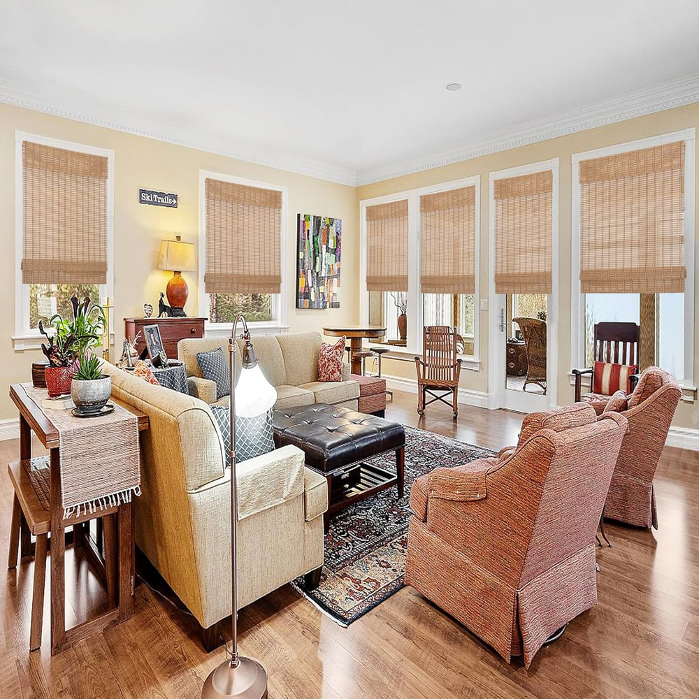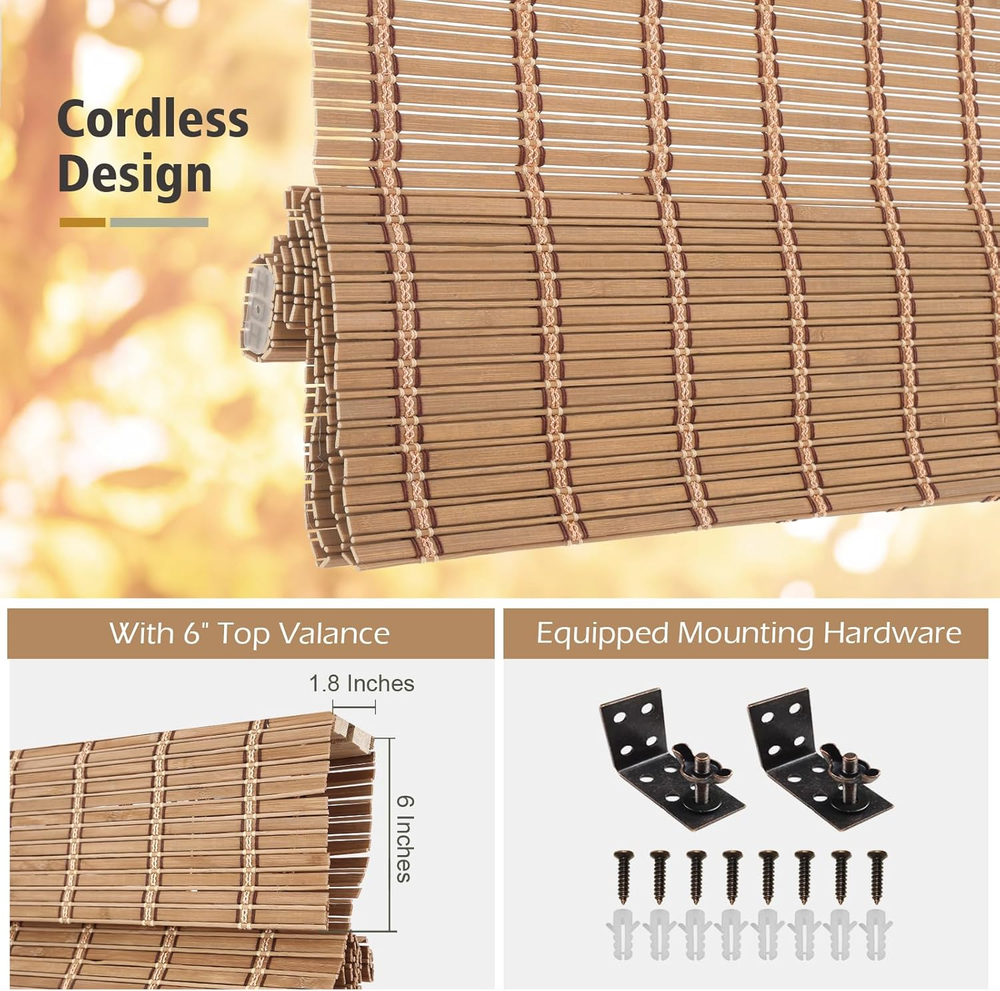 Store New Arrivals Add to Favorite View Feedback Contact Cordless Bamboo Roman Shade Blind, Woven Wood Roman Shades, Light Filtering Natural Bamboo Shades for Windows, French Doors, 21" W X 48" H, Caramel Brown Description Item model number MY-LMZL-NS-101-21W x 48H Number of Items 1 Pattern Solid Opacity 半透光 Inches Control Type Manual Room Type French door, Kitchen, Bedroom, Living Room, Home Office Product Dimensions 48"L x 21"W Material Wood Operation Mode Manual Specific Uses For Product Window Included Components Mounting Hardware, Shade included Closure Type Cordless Water Resistance Level Not Water Resistant Item Weight 3.94 pounds Special Feature Window Treatments, Light Filtering, Cordless Mounting Type Inside Mount Color Caramel Brown Shape Rectangular Number Of Panels 1 Recommended Uses For Product 室内 Size 21"W x 48"H NATURAL WOVEN WOOD SHADES - 100% natural and well-chosen bamboo material, which is processed environmentally friendly. These woven shades are created from natural woods, reeds, bamboo and grasses for a natural, calming atmosphere. CORDLESS BAMBOO SHADE - Cordless retraction mechanism can operate freely and stop at any height you want.So easy to pull up/down, lightweight. Safe for children and pets families FILTERED LIGHT - Effectively filters the light and lets the soft light pour into your room. Make the daytime sunlight become gentle, make the moonlight romantic. WIDELY USE - Bamboo shade provides a natural elegance to any room and will enhance the performance and appearance for windows, doors, patios. Mounting brackets are included, easy and quick to install MORE REQUIREMENTS- We are appreciated for the customers' orders and make any adjustments accordingly, definitely work with you to solve your concerns. Feel free to contact us for more assistance please ABOUT US We offer the best prices around on high quality products. Our E-store includes media such as books, movies, music and games while offering electronics, toys, sporting apparel, clothing, tools, general home, garden items and more. SHIPPING We are always working hard to ensure your package arrives as soon as possible. Please understand that some factors like weather, high postal traffic, and the performance of shipping companies are outside of our control. We offer free shipping to the lower 48 states and ship within 2 business days of payment, usually sooner. We do not accept P.O. Boxes. Please provide a physical address. For shipping outside of the continental USA, we only use eBay's Global Shipping Program.The item is shipped to KY and then sent to the rest of the world. International customers are responsible for all duties and taxes. Continue to check out in order to calculate costs for shipping the item to your country. Messages regarding eBay's Global Shipping Program MUST be directed at eBay EXCLUSIVELY. RETURNS We offer a 30-Day Return Policy on items which you are not completely satisfied with. You have the option for a full-refund or an exchange of the item. No returns are available on items shipped outside of the USA. PAYMENT We accept PayPal. CONTACT US This page content is yet to come Please ad us to your favorite seller and visit again later Thank You CUSTOMER SATISFACTION We try our very best to make sure every customer is completely satisfied. If there's a problem, message us! We're happy to help.