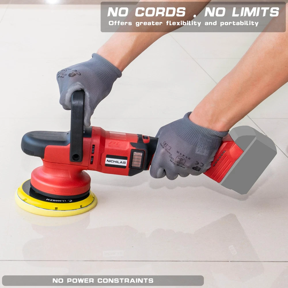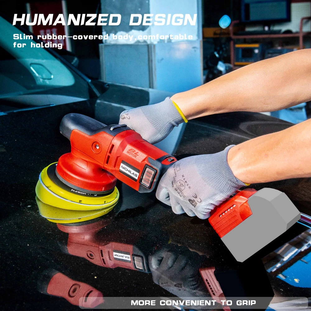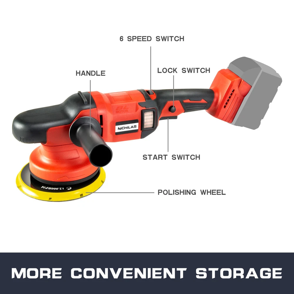 NOTE: Battery DO NOT Include ! ! ! Orbital Polisher Tool Only ! ! ! Our orbital polisher compatible with Milwaukee M18 batteries, such as 48-11-1811, 48-11-1815, 48-11-1820, 48-11-1822, 48-11-1828, 48-11-1840, 48- 11-1841, 48-11-1850, etc. (BATTERY NOT INCLUDE) RANDOM ORBITAL MOTION DESIGN: The eccentric shaft design of our polishing machine keeps the pad never always working on the same spot even if you don't move the machine during use. 6 inch 150 mm throw orbit makes the force evener and the polishing area larger. 6 SPEEDS SELECTION: The car buffer polisher has a speed range adjusting from 750rpm to 6800rpm , you can change it freely for different materials and applications to have your polishing job perfectly without any worries. MULTI-GRIP POSITION & LOCK BUTTON: Car polisher with front multi-grip position design (D handle, side handle, tool front grip position) applies to all the positions or angles and put the lock button easy operating with no fatigue, rubber grip increased better tool control and comfort when polishing. PROFESSIONAL ACCESSORIES: 1 x D handle, 1 x side handle, 6 x sandpapers 2000#, 7 x sponge polishing pads, 2 x hex key, 1 x user manual. It can be used for polishing, buffing and sanding for vehicles, cars, bikes, boats, kitchen, bathroom tiles, wood and more.