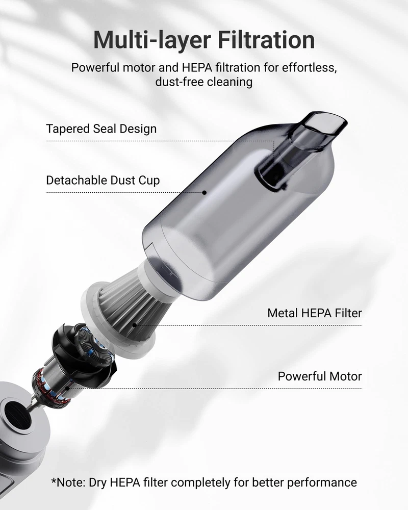 Handheld Vacuum Cordless, 12000PA Car Vacuum Cleaner High Power, Small Vacuum Cleaner Portable, 0.8lb Ultra-Light, 4-in-1 Versatile Rechargeable Handheld Vacuum for Car, Home, Pet Hair Cleaning Powerful Motor for Deep Clean: The Handheld Vacuum Cordless boasts 12,000Pa strong suction and 75,000rpm brushless motor for efficient cleaning. Clean your car or home in just one go effortlessly with its powerful performance. Lightweight and Portable: The Small Vacuum Cleaner Cordless is super lightweight at only 0.8lb and compact in size, making it easy to clean tight spaces without tiring your hands. The portable vacuum allows you to keep your car and home clean and tidy anywhere you go. Cordless and Ergonomic: The Cordless Handheld Vacuum's ergonomic and wireless design allows for easy maneuvering, comfortable extended use, and hassle-free cleaning, without being tethered to a power outlet so you can use the vacuum anywhere. Versatile 4-in-1 Design: The Handheld Vacuum Cordless with its 4-in-1 function makes cleaning and organizing a breeze. It's perfect for removing dust, cleaning keyboards, inflating outdoor gear, and extracting air from storage bags, anytime and anywhere. Long-Lasting Rechargeable Battery: Clean your car and home anytime with Vacuum Cordless Rechargeable. 26 minutes of uninterrupted cleaning time, up to 90 days standby time and USB-C charging ensures long-lasting power. 4-Layer Filtration: Clean effortlessly with the portable vacuum cordless. Its separated structure, detachable dust cup, powerful motor, HEPA filtration, and tapered seal design captures 99.7%* of dust and debris while preventing garbage leakage. (Note: The washable HEPA filter should be dried completely before reusing for optimal performance.) Shipping We offer FREE shipping on all orders! We ship within Three business days of payment, usually sooner. We use a selection of shipping services such as UPS, FedEx, USPS etc. We only ship to the lower 48 states, no APO/FPO addresses or PO Boxes allowed. Local pickups and combined shipping options are not provided at this time. Return You can return a product for up to 30 days from the date you purchased it. Any product you return must be in the same condition you received it and in the original packaging. Please keep the receipt. Payment We accept payment by any of the following methods: PayPal Please pay as soon as possible after winning an auction, as that will allow us to post your item to you sooner! Feedback Customer satisfaction is very important to us. If you have any problem with your order, please contact us and we will do our best to make you satisfied. Contact Us If you have any queries, please contact us via ebay. We usually respond within 24 hours on weekdays. Please visit our eBay store to check out other items for sale! Thank you for shopping at our store.