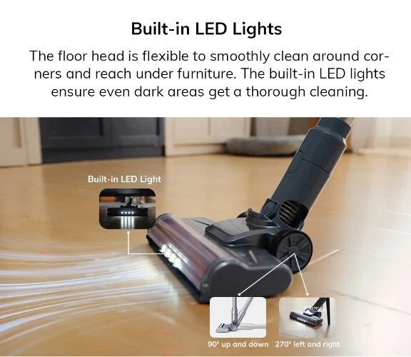 Cordless Handheld Vacuum Cleaner 21kPa Suction 1.2L Dust Cup LED Illuminate Home