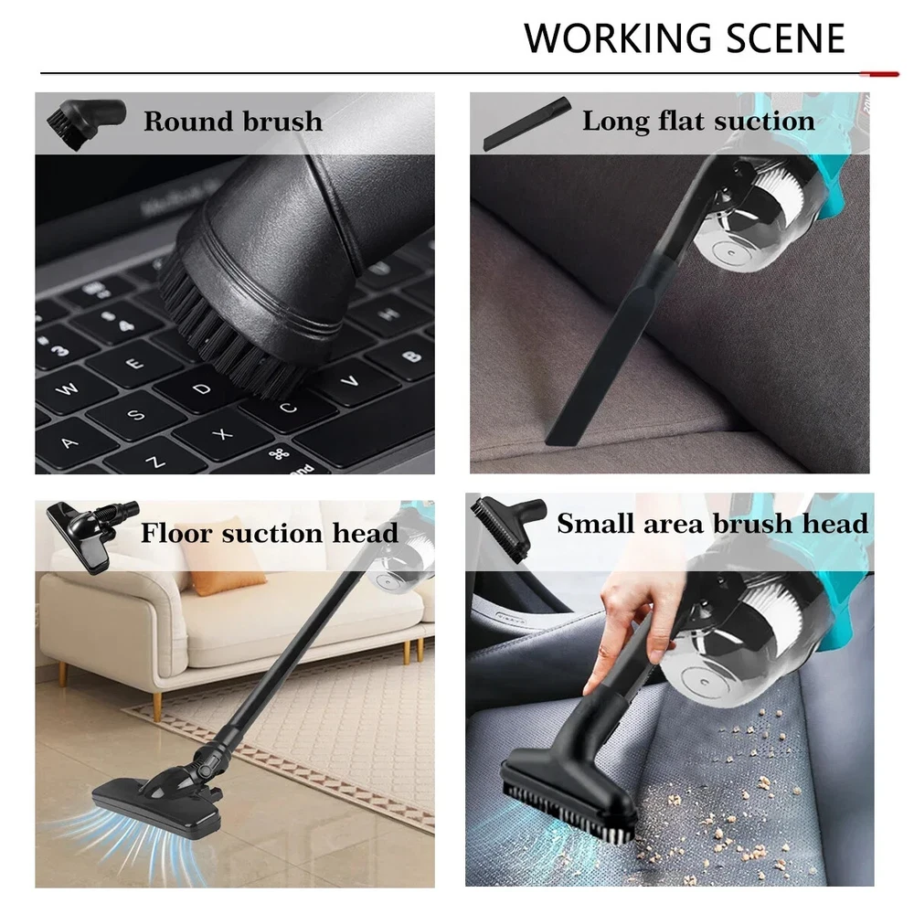 Please note: 1. Some options do not include batteries. please prepare the batteries by yourself. 2.In transit, the carton may be slightly broken or the product will have slight scratches, which is normal. Please do not place an order if you mind. 3.If there are any issues with the received product, please contact us as soon as possible, and we can help you solve the problem.Thank you Package Included:Please pay attention to the images of different options Specifications: Color: Blue Tank Capactity:23.6oz/0.7L Max.airflow rate:0.8m³/min Led Light:yes Bare weight:2.45kg Sound pressure:72-89dB Features: 1.High-horsepower copper core motor provides powerful suction 2.0.7L Tank Capacity allows for maximum debris pick up without the need for regular tank empties Replaceable/Washable Filters guarantees filter can be kept clean and working at full efficiency over longer periods of time 3.Cordless design, ergonomic design and pleasant handle, our vacuum cleaner gives you complete and comfortable mobility. 4.Cyclonic Action ensures debris is directed away from the filter ensuring maximum suction performance is maintained over longer periods of use 5.Easy Clean indoor indoor and outdoor. clean dust/hair waste from bedding, corners, car,bed bottoms, carpets, furniture, etc. Notice: 1.Please allow 1-2cm error due to manual measurement. 2.The colors may have different as the difference display,please understand.