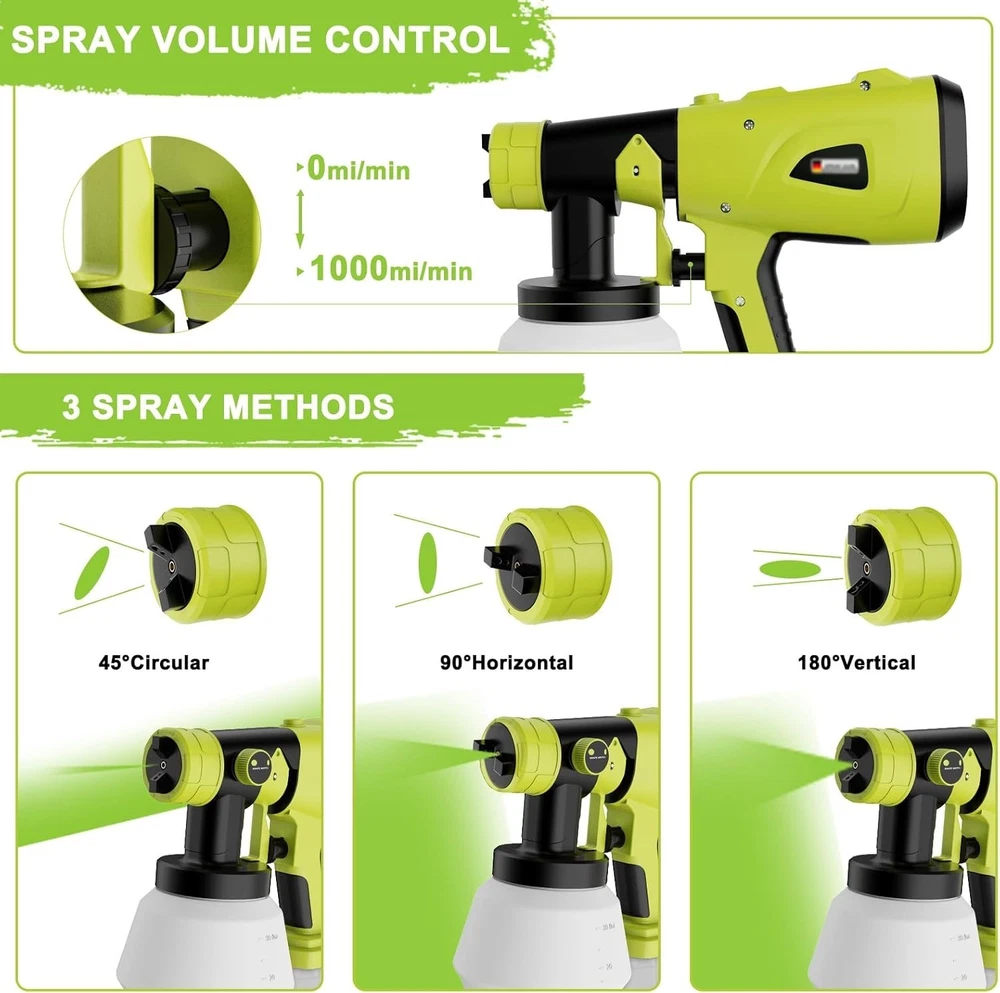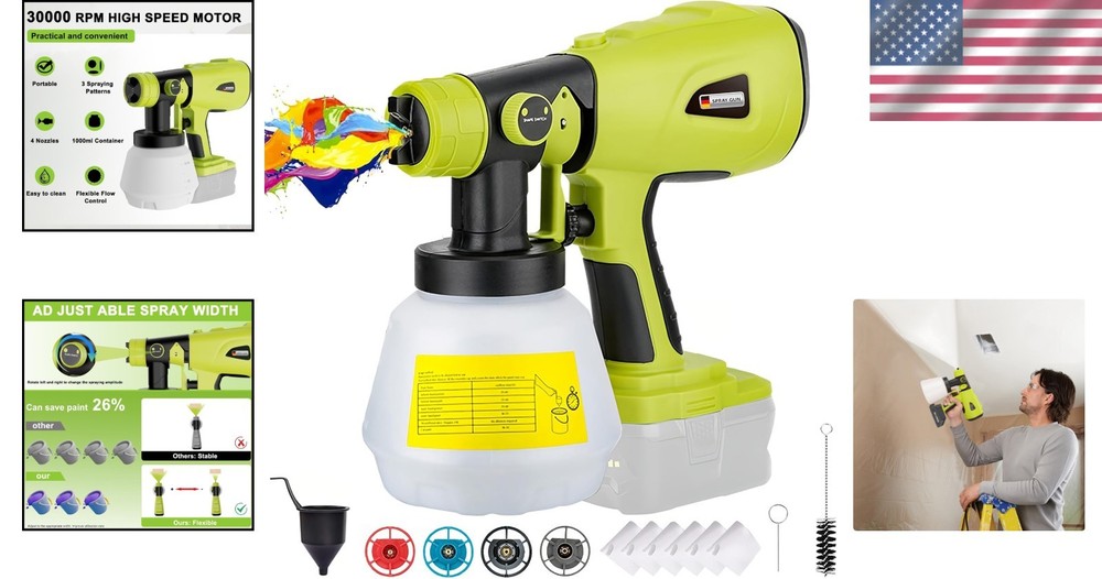 Cordless Paint Sprayer Light Green 1000ML Multi-Pattern Electric for Walls ‹ › ‹ › ‹ › ‹ › ‹ › ‹ › ‹ › ‹ › ‹ › ‹ › Cordless Paint Sprayer Light Green | 1000ML | Multi-Pattern Electric for Walls Product Features: Compatible with Popular Batteries: Works seamlessly with Ryobi Li-ion & Ni-CD Batteries (such as P100, P102, P103, P104, P105, P107, P108, P109). Enjoy the freedom of operation without the hassle of cords. Versatile Spraying Options: Equipped with 3 different spray patterns (vertical, horizontal, and circular) and 4 interchangeable nozzles for ultimate control. The 2.5mm nozzle is pre-installed; additional sizes include 1.0mm, 1.8mm, and 3.0mm for diverse projects. High-Powered Performance: Built with a robust brushless motor for reduced noise and extended operation. Achieve an impressive maximum viscosity of 80 DIN/sec and a speed of up to 1600 ml/min, allowing you to complete jobs swiftly and efficiently. Lightweight & Portable: Weighing only 2.5lbs, this sprayer is designed for effortless transport, making it perfect for a range of indoor and outdoor applications including doors, windows, fences, ceilings, floors, and more. Hassle-Free Maintenance: User-friendly design makes it simple to disassemble and clean. Includes cleaning brush and needles to ensure optimal functionality and prevent clogs after every use. What’s Included: 1000ml Paint Sprayer 4 Size Nozzles User Manual Cleaning Brush Cleaning Needle Viscosity Cup Paint Filter Why Choose Our Cordless Paint Sprayer? Transform your painting experience with the ultimate cordless convenience. Designed for effortless operation, this paint sprayer not only enhances project efficiency but also guarantees excellent results with minimal effort. Whether you are a seasoned DIY enthusiast or a beginner, our paint sprayer is your perfect partner in achieving flawless finishes. Order your Cordless Paint Sprayer today and elevate your painting projects to new heights of excellence! Shipping Free & Fast Shipping - We offer free shipping to most of the USA with a normal delivery time of 3-7 days. However, due to the current situation, additional delivery time (up to 3 weeks) may be required for some items. Alternative Carriers - We may use alternative carriers (e.g. USPS, FedEx, UPS, etc.) to ensure your package arrives safely and on time. Due to the use of multiple carriers, we are unable to provide a tracking number automatically. Handling Time - Orders are processed and shipped within 1-2 business days of receiving cleared payment. Shipping Restrictions - Shipping to Alaska, Hawaii, Puerto Rico, Guam, and other US territories may incur shipping charges or delivery restrictions. Please contact us before ordering, or your order can be refunded/cancelled. State Restrictions - There may be restrictions based on your state of purchase. For example, certain items may not be shipped to California due to state regulations. Contact for Tracking Updates - If you require tracking updates or have any concerns about the delivery of your order, please feel free to contact us, and we will be happy to assist you. Return 30-Day Hassle-Free Returns - We want you to be completely satisfied with your purchase. If you are not, you can return the item within 30 days of receiving it for a full refund or exchange. Easy Return Process - To start a return, simply contact us and we will provide you with a prepaid return shipping label and detailed instructions. Restocking Fee - There are no restocking fees for returns. However, the buyer is responsible for return shipping costs if the return is not due to a seller's error. Refund Processing Time - Refunds will be processed within 5 business days of receiving the returned item in its condition. Payment We accept all major credit cards, PayPal, and Apple Pay for your convenience. Your payment information is secure and encrypted to ensure a safe and seamless transaction. Please complete your payment within 3 days of purchase to avoid any delays in shipping. Feedback Your feedback is extremely important to us. We strive to provide the best products and customer service possible. If you are satisfied with your purchase, please take a moment to leave us a positive review. If you have any concerns or issues with your order, please contact us before leaving negative feedback. We are committed to resolving any problems and ensuring your satisfaction. Contact Us If you have any questions or concerns, please feel free to out to our customer support team. You can contact us through the eBay messaging system. We are available Monday to Friday, 9:00 am to 5:00 pm EST, and we will do our best to respond to your inquiry within 24 hours. Buy it now and enjoy a pleasant shopping experience! Unit Quantity: 1 Compatible Material: Exterior Paint,Interior Paint,Polyurethane/Lacquer,Primer,Sealer,Stain Features: Adjustable Pattern Control,Cup Fed,Multidirectional Spray,Onboard Storage Items Included: 1000ml Paint Sprayer,Paint Sprayer,4 Size Nozzles,User Manual,Cleaning Brush,Cleaning Needle,Viscosity Cup,Paint Filter Suitable For: Commercial,Decking,Door,Exterior,Fencing,Floor & Ceiling,Furniture & Cabinet,Interior,Residential,Wall,Woodworking Projects,Cabinet Type: Handheld Sprayer Frame Configuration: Handheld Power Source: Battery Color: Light Green Cup/Hopper Capacity: 1e+3 milliliters Item Height: 10 Inches Item Weight: 2.5 lb