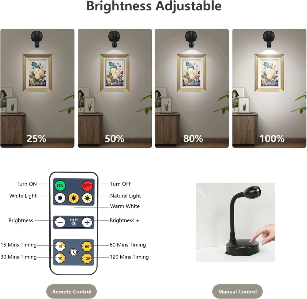 Store New Arrivals Add to Favorite View Feedback Contact Cordless Spotlight Battery Operated, LED Picture Light, Dimmable Accent Light with Remote, Indoor Stick on Display Lamp for Plant Tree Photo Dartboard Painting Artwork Portrait Description Item model number KQT-CGSD Style Minimalist Number of Lights 1 Power Source Battery Powered Country of Origin China Switch Style Push Button Light Direction Adjustable Batteries Included? No Assembled Height 2.5 inches Batteries Required? Yes Product Dimensions 3.15 x 3.15 x 2.5 inches Material Plastic, Metal Type of Bulb LED Assembled Width 3.15 inches Included Components Remote Control Item Package Quantity 2 Item Weight 12.6 ounces Specific Uses Home Special Features Adjustable Color Temperature, Dimmable, Cordless, Remoted Controlled, Timer Function Part Number KQT-CGSD Switch Installation Type Wall Mount Shade Color White Color Temperature 4500 Kelvin Color Black-Long Luminous Flux 80 Lumen EU Energy Efficiency Label 100 lumens/watt Shape Round Voltage 4.5 Volts (DC) Assembled Length 3.15 inches Finish types Painted [Multi Directional Lighting Head] - The picture light's arm is flexible and can be bent to any angle, offers your wall arts a perfect lighting effect. [Adjustable Brightness] - The small spotlight has a long lasting super bright LED, 80 Lumens, you can press 10%, 40%, 80% or 100% directly, or press the "+" or "-" button on the remote to adjust the brightness level as you wish. [3 Lighting Modes] - The artwork light has 3 color temperatures to choose from, cool white, natural white and warm white, will suit your different moods. [Auto OFF Timer] - Press the timer button on the remote to set the mini accent lights to turn OFF automatically in 15, 30, 60 or 120 minutes, good for energy saving. [Battery Operated & Remote Controlled] - The painting light is cordless and powered by 3 AA batteries (not included). No additional wiring is needed. The remote can control the lights within 18 ft, very handy and easy to operate. [Easy Installation & Widly Usage] - Easy to mount with provided double sided tapes or screws, can stick on anywhere to highlight your closet, bookcase, decorations, art, painting, picture, skulpture, photograph, artwork, statue, model, dartboard, potted plants, trees, etc. 80 Lumens Long lasting LED, lifespan is 80000 Hours CCT: 3000K warm white, 4500K natural white, 6000K cool white Wattage: 0.8W, DC 4.5V. ABOUT US We offer the best prices around on high quality products. Our E-store includes media such as books, movies, music and games while offering electronics, toys, sporting apparel, clothing, tools, general home, garden items and more. SHIPPING We are always working hard to ensure your package arrives as soon as possible. Please understand that some factors like weather, high postal traffic, and the performance of shipping companies are outside of our control. We offer free shipping to the lower 48 states and ship within 2 business days of payment, usually sooner. We do not accept P.O. Boxes. Please provide a physical address. For shipping outside of the continental USA, we only use eBay's Global Shipping Program.The item is shipped to KY and then sent to the rest of the world. International customers are responsible for all duties and taxes. Continue to check out in order to calculate costs for shipping the item to your country. Messages regarding eBay's Global Shipping Program MUST be directed at eBay EXCLUSIVELY. RETURNS We offer a 30-Day Return Policy on items which you are not completely satisfied with. You have the option for a full-refund or an exchange of the item. No returns are available on items shipped outside of the USA. PAYMENT We accept PayPal. CONTACT US This page content is yet to come Please ad us to your favorite seller and visit again later Thank You CUSTOMER SATISFACTION We try our very best to make sure every customer is completely satisfied. If there's a problem, message us! We're happy to help. WE ACCEPT Copyright © 2021 AutoDS. | All Rights Reserved
