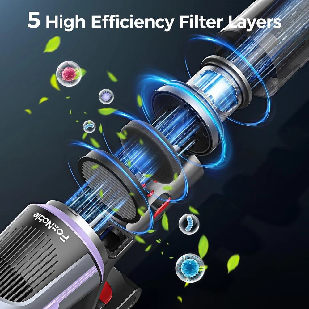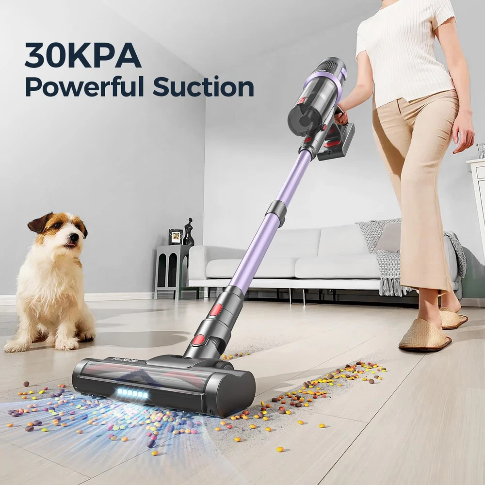 【Super Suction】The P4 Cordless Vacuum Cleaner Has 2 Adjustable Suction Powers up to 30kpa, Which Can Easily Remove Dust, Dirt, Particles of Different Sizes and Pet Hair. Suitable for All types of Floors. 【Long Battery Life】Vacuum Cleaners for Home Equipped with a High-Capacity, Removable Battery Can Last up to 50 Minutes. After the Vacuum Cleaner Is Done, Just Put It on the Stand for Charging. With Multiple Connected Cleaning Heads, It is Ideal for Whole-House Cleaning. 【LED Display】Cordless Vacuum Cleaner Has an Easy-to-read LED Screen that Tracks the Remaining Battery Life and Working Status of The Vacuum Cleaner in Real Time. The Concise, High-definition, and Extra-large Icons Are Perfect for Nearsighted People and Middle-aged and Elderly People. 【Upgraded V-shaped Anti-tangle Brush】Cordless vacuum cleaner Is Equipped with an Upgraded V-shaped Roller Brush, a 270° Rotating LED Floor Brush Head and a Flexible Hose, Which Allows Hair to Easily Enter the Pipe, Easily Cleaning the Table Legs, Corners and Gaps, and The Bottom of the Bed, While Reducing the Possibility of Hair Tangling. 【High-efficiency Filtration】Stick Vacuum Is Equipped with a High-efficiency 5-stage Filtration System, Which Can Effectively capture 99.99% of Tiny Particles. The 1.5L large-capacity Dust cup and One-button Emptying Design Reduce the Number of Times to Empty the Garbage While Bringing a More Convenient and Hygienic User Experience. 【8-in-1 Multi-Function】The Lightweight Cordless Vacuum Cleaner Comes with a Series of Accessories that Can be Combined into Eight Configurations to Easily Clean Low-pile Carpets, Floors, Sofas, Stairs, Cars and Upholstery. You Can Redefine Cleaning Above, Below and Outside. [Lifetime Customer Service] Provides Customers with a 3-years Return and Exchange service + 7*24-hour After-sales Service. If You Encounter Any Problems with The Vacuum Cleaner, You Can Contact Our Customer Service Staff at any Time Through the Store Window