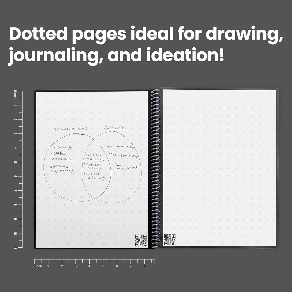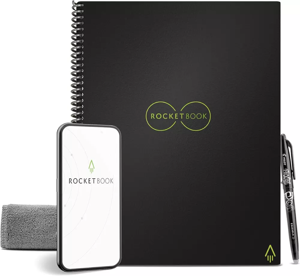 Store New Arrivals Add to Favorite View Feedback Contact Fast deliveries to the customer's home Quality customer service John Make the customers happy! Core Reusable Spiral Notebook, Letter Size 8.5X11, Black - Dotted Pages, App-Connected, Erasable, Durable Cover, Ideal for School, Work, and Creative Projects Description Create, Digitize, Erase, Re-Create: Capture ideas with the included Pilot Frixion Pen, digitize effortlessly using the Rocketbook app, store in your preferred cloud service. When done, simply wipe the pages clean with a damp cloth and start fresh. App-Enabled for Digital Organization: The Rocketbook app allows you to scan and upload your visual work directly to cloud platforms like Google Drive, Dropbox, OneNote, etc. The app-connection ensures your creativity is accessible from anywhere. High-Quality & Durable Materials: Crafted from reusable, premium dotted paper, the Rocketbook Core features a spiral binding and waterproof cover. The grid layout offers flexibility for everything from bullet journaling to geometric sketches. Portable and Versatile Sizes: Available in two sizes—Letter (8.5 x 11 inches) and Executive (6 x 8.8 inches)—the Rocketbook Core is compact enough to fit into backpacks, purses, or briefcases. This notebook offers portability and versatility. Eco-Friendly Reusability: Designed with sustainability in mind, Rocketbook notebooks help reduce paper waste with a reusable alternative. Enjoy a paper-like notebook that can be used repeatedly, allowing you to save work and erase everything else. Product Description Unlock your creativity and enhance your productivity with the Rocketbook Core Dotted Notebook, the perfect companion for drawing, sketching, and more. Ideal for college students, working professionals, teachers, and anyone who values organized note-taking, this notebook combines traditional design with modern technology for a superior writing experience. This versatile notebook features a durable, waterproof cover and thick, reusable pages. The side spiral design allows the notebook to lay flat, making it a perfect canvas everything from bullet journaling and creating layouts to graphing equations, artistic sketches, and visualizing diagrams. Its dotted pages are ideal for precise geometry, shapes, and grid views, allowing for flexible, flowing ideas and artistic expression. The Rocketbook Core Dotted Notebook is app-connected, so you can easily save, organize, and share your notes and visual representations. Use it to sketch out concepts, brainstorm thinking ideas, or engineer detailed plans. The included Pilot Frixion pen lets you erase and switch between projects with ease, enhancing your productivity and providing the freedom to adapt your notebook to any task. This flexible process supports ideation and enhances productivity, making it ideal for artists, engineers, and creators alike. It’s a thoughtful gift for back-to-school, professional settings, or any occasion where creativity and organization are key. From the Manufacturer Item model number EVR-L-K-A Brightness Rating 0.01 Style minimalist Number of Items 1 Color Black Pages 32 Product Dimensions 11"L x 8.5"W x 0.5"Th Material Type Paper Sheet Size 8.5 x 11 inches Manufacturer Part Number EVR-L-R Item Weight 8.6 ounces Size Letter Specific Uses For Product Productivity, Note Taking, Journal Writing, Collaboration Ruling Dotted Paper Finish Specially Coated Ruling Type Dotted Is Discontinued By Manufacturer No Special Feature Eco friendly,reusable,Hard cover ABOUT US We offer the best prices around on high quality products. Our E-store includes media such as books, movies, music and games while offering electronics, toys, sporting apparel, clothing, tools, general home, garden items and more. SHIPPING We are always working hard to ensure your package arrives as soon as possible. Please understand that some factors like weather, high postal traffic, and the performance of shipping companies are outside of our control. We offer free shipping to the lower 48 states and ship within 2 business days of payment, usually sooner. We do not accept P.O. Boxes. Please provide a physical address. For shipping outside of the continental USA, we only use eBay's Global Shipping Program. The item is shipped to KY and then sent to the rest of the world. International customers are responsible for all duties and taxes. Continue to 'check out' to calculate costs for shipping the item to your country. Messages regarding eBay's Global Shipping Program MUST be directed at eBay EXCLUSIVELY. RETURNS We offer a 30-Day Return Policy on items in which you are not completely satisfied with. You have the option of a full-refund or an exchange of the item. No returns are available on items shipped outside of the USA PAYMENT We accept PayPal. CONTACT US This page content is yet to come Please ad us to your favorite seller and visit again later Thank You CUSTOMER SATISFACTION We try our very best to make sure every customer is completely satisfied. If there's a problem, message us! We're happy to help. WE ACCEPT