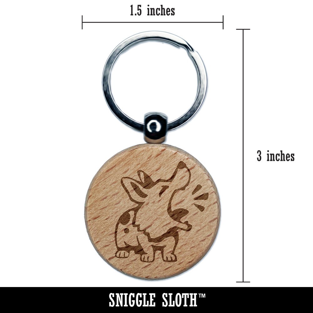 Corgi Dog Engraved Wooden Round Keychain Charm with Barking Design