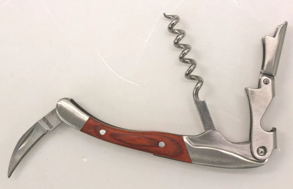 Corkscrew Wine Bottle Opener Waiters Key Wood Double Hinged with Foil Cutter