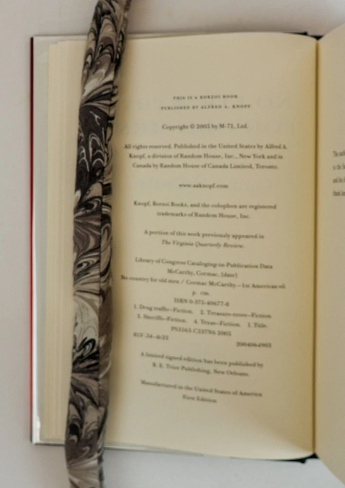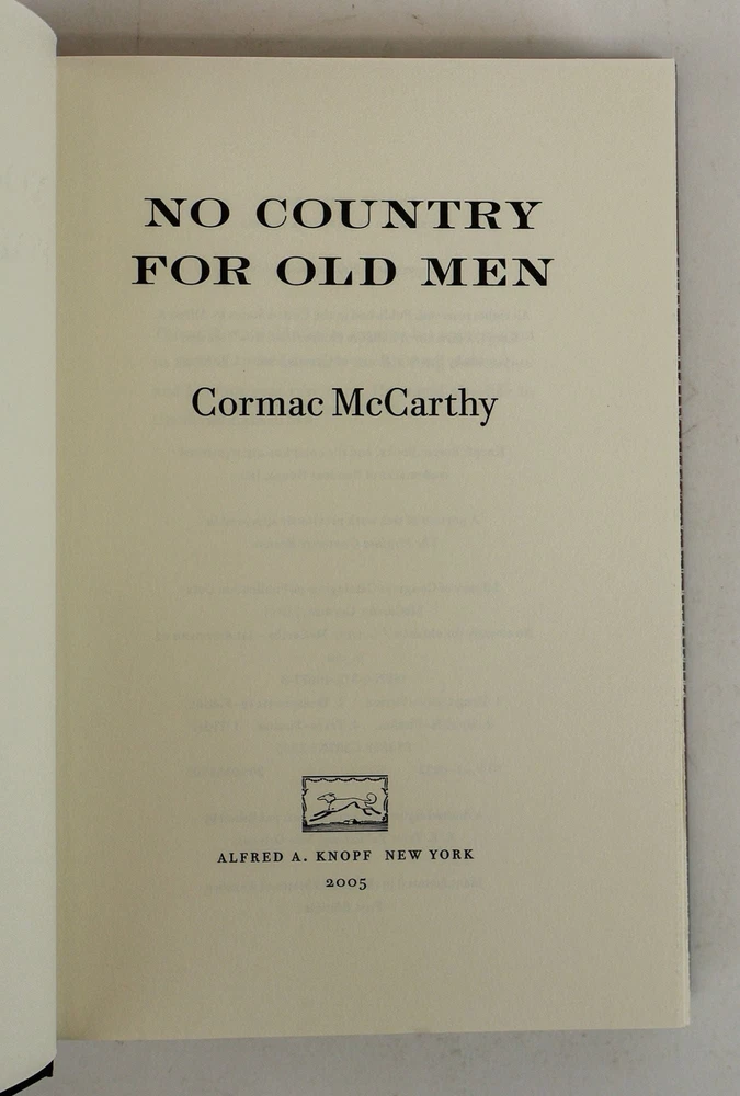 NO COUNTRY FOR OLD MEN [Signed] Author: McCarthy, Cormac Title: NO COUNTRY FOR OLD MEN [Signed] Publication: New York: Alfred Knopf, 2005 Edition: First Edition, First Printing Description: Octavo, 305 pages. In Very Good condition with a Near Fine condition dust jacket. Spine is red with raised white lettering. Dust jacket is protected with mylar wrapping. Boards have moderate shelving wear to the spine head and tail and moderate creasing to the front hinge. Signed flat by Cormac McCarthy on tipped in page. JW consignment. Shelved Case 5. NOTES Originally published in 2005, American author Cormac McCarthy's NO COUNTRY FOR OLD MEN quickly achieved success as a harrowing crime drama that follows a triangle of men tied together by the events of a drug deal gone awry. In 2007, two years after the novel's release, NO COUNTRY FOR OLD MEN was adapted into a film of the same name starring Tommy Lee Jones, Josh Brolin, and Javier Bardem; the film was awarded four Oscars, including the award for Best Picture at the 80th Academy Awards. Between the success of NO COUNTRY FOR OLD MEN and its film adaptation, McCarthy was awarded the Pulitzer Prize in fiction for his 2006 novel, THE ROAD. Seller ID: 1384854 Subject: Dupont Circle, Literature Welcome to the eBay store of Second Story Books! DC's Oldest Rare and Used Bookstore, Second Story Books operates two open shops in the Washington D.C. metropolitan area. We have an extensive internet presence and provide accredited appraisals member ASA. This listing was created by Bibliopolis.