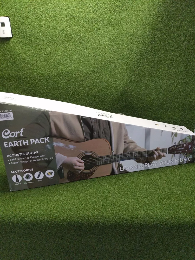 Cort Acoustic Guitar Earth Pack Bundle Earthpackop-A-U 1830793 Description: This Listing Includes One Brand New Cort Acoustic Guitar Earth Pack Bundle As Shown. Includes Cort E300c Tuner, Picks, Strap, And Soft Case. Set Ships In Original Factory Box. Photos In Listing Are Of The Exact Item You Will Receive. The Cort Earth Pack Delivers A Bold Playing Experience For Any Aspiring Players Seeking Quality Built Instrument In A Complete Starter Package. The Earth Pack Includes Earth 60 With Features That Are Hard To Find In Its Price Range. Earth 60 Features A Full-sized Dreadnought Body With Solid Spruce Top And Mahogany Back And Sides For Great Top End Tone And Warm, Balanced Sounds, And Is Built By The Same Builders That Make Corts Higher Tier Models. Also Included In The Earth Pack Are A Spare Pack Of Strings, Picks, A Gig Bag And An Electronic Guitar Tuner To Get You Playing Instantly. Earth60: Specifically Designed For The Earth Pack, The Earth60 Features The Golden Standard Of Acoustic Guitars: Solid Spruce Top. Together With Mahogany Back And Sides, This Wood Combination Delivers The Time-tested, Signature Bright Yet Full Sounding Tone That Players All Around Love And Desire, While The Full-sized Dreadnought Body Offers Full Body Output And Plenty Of Projection. Solid Sitka Spruce Top: Spruce Provides An Ideal Balance Between Strength And Flexibility, Hence Its Overwhelming Popularity As The Wood Of Choice For Tops Of Acoustic Guitars. Spruce's Versatile Sonic Character Makes It Ideal For A Variety Of Musical Genres And Playing Styles. Mahogany Back & Sides: Bright Yet Natural With A Strong And Warm Midrange, The Beloved Mahogany Wood Has Been A Standard For Back And Sides On Premium Acoustics For Many Decades. Open Pore Finish: Not Only Does The Open Pore Finish Enhance The Resonance Of The Woods But It Also Reduces The Weight Of The Guitar For Improved Playability. Coated Strings: High-quality Coating On The Strings Resist Humidity, Dirt And Sweat For Long String Life And Improved Playability. Specially Outfitted On This Model. Dovetail Neck Joint: Strongly Joined With Meticulous Workmanship By Experienced Craftsmen, The Dovetail Joint Transfers The Body’s Vibration And Resonance To The Neck With No Loss Of Energy And With Plenty Of Detail. Cort E310c Tuner: This Clip-on Electronic Tuner Provides Quick And Accurate Tuning With Easy-to-read Backlit Display, And Its Compact Size And Light Weight Makes It More Adequate For Clipping On To A Headstock. Picks: Cort Medium Thickness Picks Are Included. Straps: Comfortable Shoulder Strap Is Included. Gig-bag: Great For Carrying Your Guitar Around, The Gig Bag Also Helps Prevent Unwanted Dust From Contaminating Your Guitar While It Is Stored.