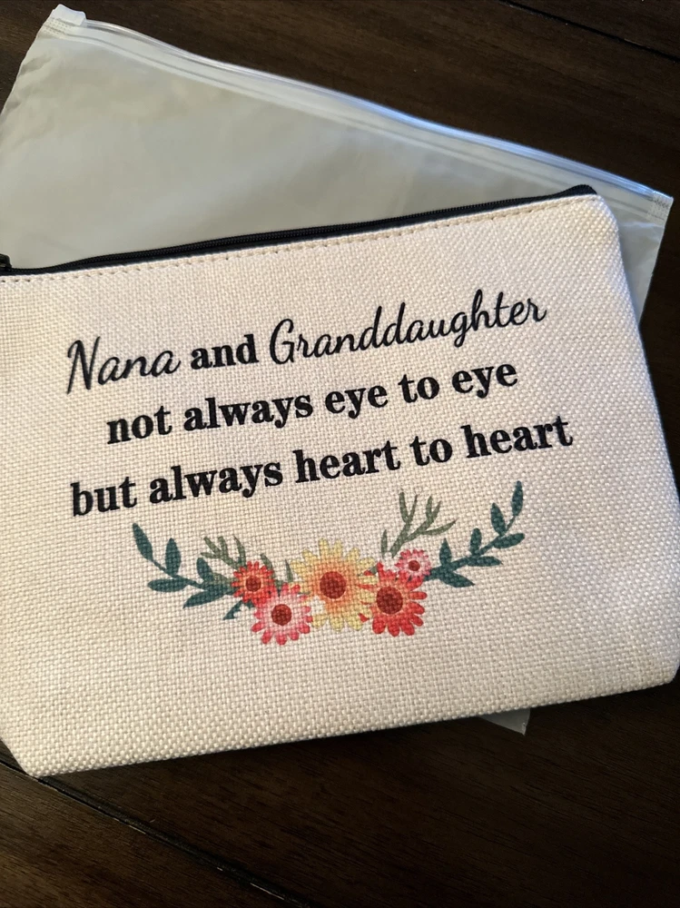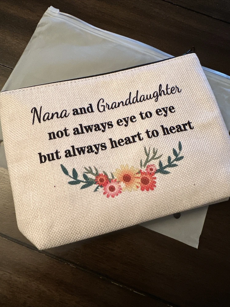 Cosmetic Bag Makeup Bag Nana And Granddaughter Not Always Eye To Eye But Always heart to heart NIP