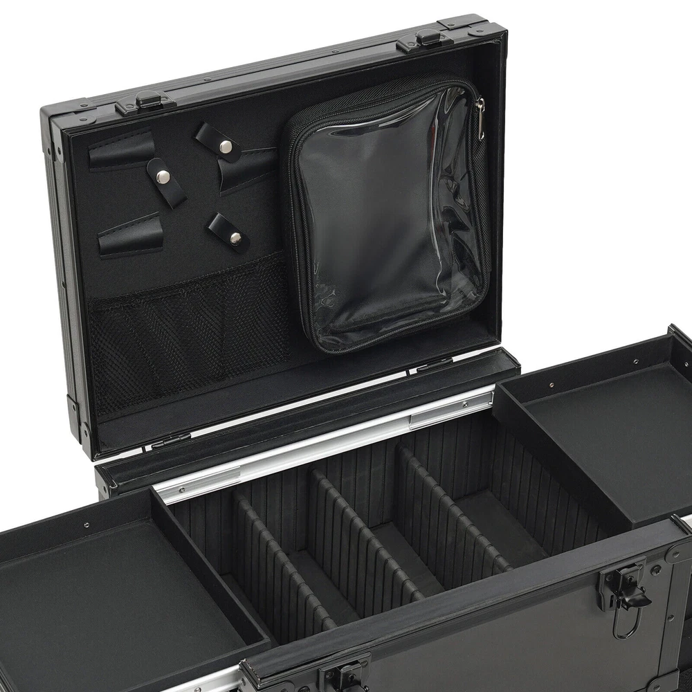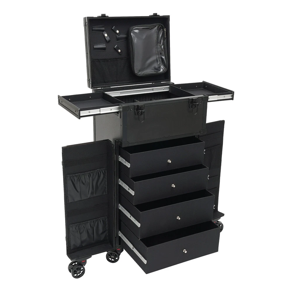 Cosmetic Suitcase Beauty Facial Storage Makeup Travel Box Salon Trolley Cart Rolling Makeup Case, Makeup Organizer Travel Case, Professional Makeup Case+6Wheels&Drawers Description Whether you're working or traveling, a professional makeup case will be a great convenience. This makeup case is made of high-quality aluminum alloy and ABS that is strong and durable. The top scissor groove and a small bag, the middle movable partition, the storage box under the partition, the lower 4 pull-out drawers, and side door pockets allow you to sort and store items. The strong load-bearing capacity allows you to store items with confidence. In short, it is the ideal choice for professional makeup artists and beauticians. Key Features Premium Materials: This product is made of high-quality aluminum alloy and ABS, which is corrosion-resistant, wear-resistant , and durable , ensuring your long-term use. Classified Storage: The top scissor groove and a small bag can be used to store accessories, and the middle movable partition can be used to store styling tools. The storage box under the partition can be used to store nail polish, lipstick, brush, or hair remover(all are not included). The lower 4 pull-out drawers can be used to store sprays, curlers, hair dryers (all are not included), or other supplies. The side door pockets can be used to store eye black, eyeliner pens, and combs(all are not included), making your items neat and orderly. Thoughtful Design: Three adjustable rod lengths allow you to freely adjust the rod length, while also being suitable for people of different heights. In addition, the detachable universal wheels enable you to replace them conveniently when damaged, which is easy and cost-efficient. Strong Load-bearing Capacity: This product can bear a weight of 66.14 lbs , allowing you to use it with confidence without worrying about damage due to excessive items. High Practicality: It can be used as a beauty table, allowing you to do beauty work anytime, anywhere. Protect Your Privacy: The safety buckle can protect valuable items inside your box and maximize your privacy. Generous Appearance: The black color scheme, rectangular shape, and smooth lines give this product a generous appearance, nicely decorating your dressing room. Excellent Gift: Its exquisite design and large capacity make this product a great gift to your mother, girlfriend, sisters, wife, and loved ones so that they can enjoy more convenient makeup time. Protective Packaging: The sponge s can better protect your product during transportation and make it delivered to you completely to the greatest extent. Details Durable Handle: The ergonomically designed handle can relieve finger pressure and provide you with a comfortable user experience. Wide Opening: With a wide opening, it is easy for you to store and retrieve certain items without messing up other items in the box. Clear Storage Bag: It is effective against dust and water and easy to search for the contents. Universal Wheels: The bottom 6 universal wheels allow you to easily move this product. Application It is recommended for make-up artists from beginners to professionals such as freelance make-up artists, wedding make-up artists, celebrity make-up artists, and make-up interns. It can also be used for traveling or kept at home for makeup enthusiasts, hair barbers/stylists, nail technicians, estheticians, embroiderers, and crafters. Specification Color: Black Shape: Rectangular Style: Modern Material: Aluminum Alloy, ABS Assembly Required: Yes Single Side Partition Size: 20*22cm/7.87*8.66in Case Door Size(L * H): 20*49cm/7.87*19.3in Overall Product Size: 40*30*80cm/15.75*11.81*31.5in Load-bearing Capacity: 30kg/66.14lbs Gross Weight: 10kg/22.05lbs Net Weight: 9kg/19.84lbs Package Size: 83*33*45cm/32.68*13*17.72in Package Included 1* Makeup Case 6* Universal Wheels 4* Keys Notes Please note that items other than this product are not included. The service wear of the case is a normal phenomenon. In the process of daily use, please try to avoid excessive impact and drop to extend the lifespan of the product. Please use soft tools and water to clean. Please keep away from corrosive liquids. Please avoid long-term exposure to the sun. Please use this product within its carrying capacity. Please allow the slight color difference caused by the shooting light and the 1-3 cm error due to manual measurement, and make sure you do not mind before ordering. Payment Delivery details Terms of sales About us Contact us Payment We accept ebay payment 。 Fees such as import duties, taxes are not included in the item price or shipping costs. These charges are the buyer's responsibility. Delivery details Shipping: 2-9 working days to: USA Terms of sales We maintain high standards of excellence and strive for hundred percent customer satisfaction. Feedback is very important to us. We hope that you contact us immediately before you give neutral or negative feedback, so that we can address your concerns. It is impossible to address issues if we do not know about them! About us Your satis faction is our ultimate goal. We work hard to earn your trust and future business. Our certified technicians have tested each item before shipping. The unit comes with 1 year limited warranty on all manufacturing defects. a) If you receive a defective item, you may return it or ask for a discount. Please contact us within 14 days after you receive the package. b) What you returned must be intact and in its original packaging as re? u. Customer is responsible for shipping costs of the returned item. c) We will cover the cost of shipping back t with the shipping rate indicated in the registration page. We will send you a new unit or refund the full payment you paid. Thank you. Contact us Business Hour Business Hour: Monday To Friday: 8:30 AM to 5:00 PM (Beijing China time) Due to time zones, our reply to your questions may not be immediately. But within above working time, we will reply your email w