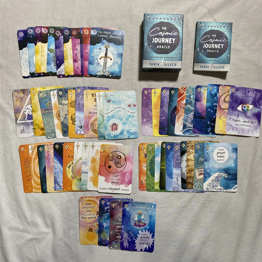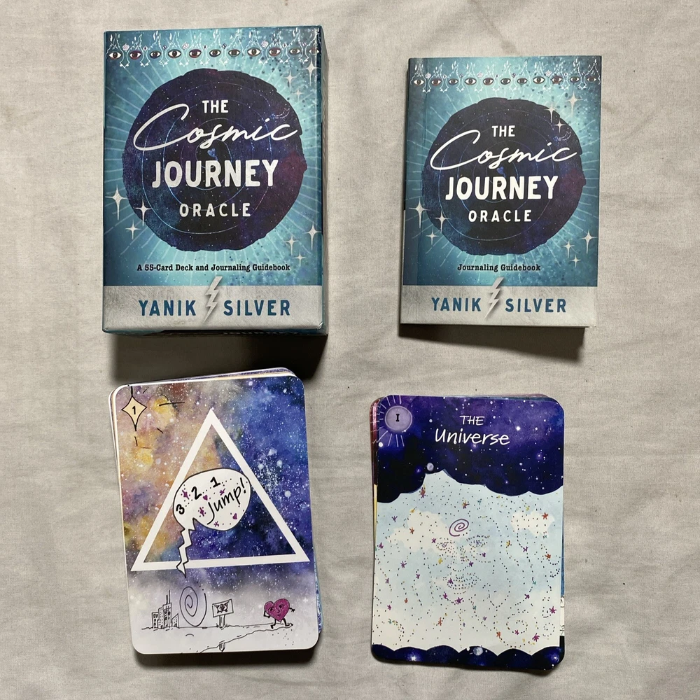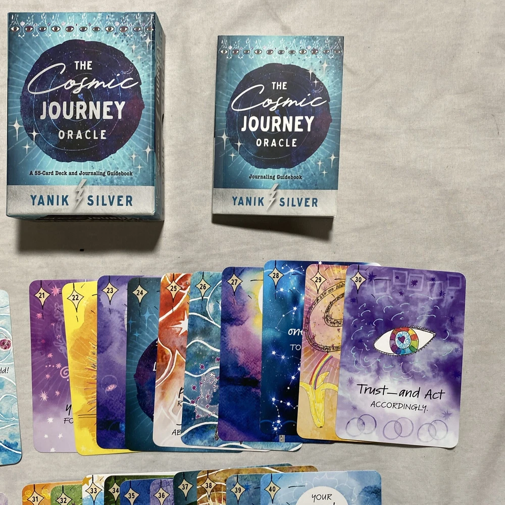Item Width:4 inPublisher:HAY House, IncorporatedBook Title:Cosmic Journey Oracle : a 55-Card Deck and Journaling GuidebookAuthor:Yanik SilverGenre:Body, Mind & Spirit, Self-HelpItem Length:5.5 inItem Height:1.5 inFormat:Cards,Flash CardsNumber of Pages:55 Cards And 155 Page BookletPublication Year:2020Ex Libris:NoNarrative Type:FictionTopic:Divination / Tarot, Inspiration & Personal Growth, Journaling, CreativitySeller Notes:“Good condition and complete as seen in photos.”Language:EnglishItem Weight:13.7 Oz