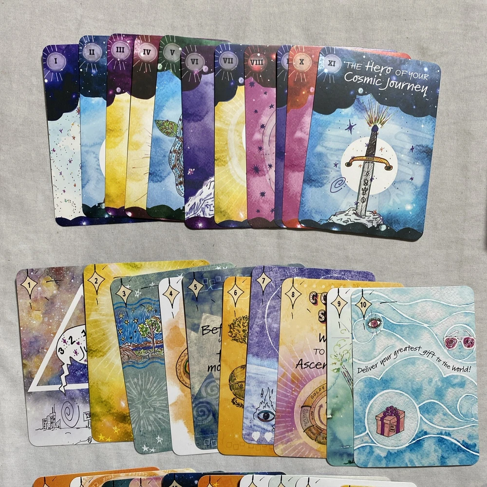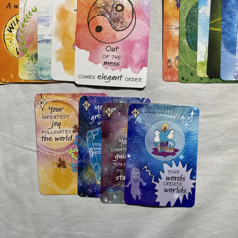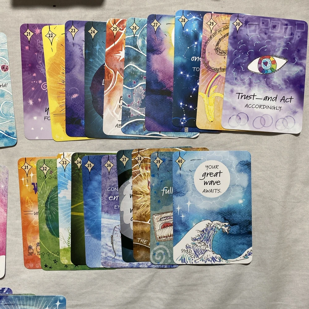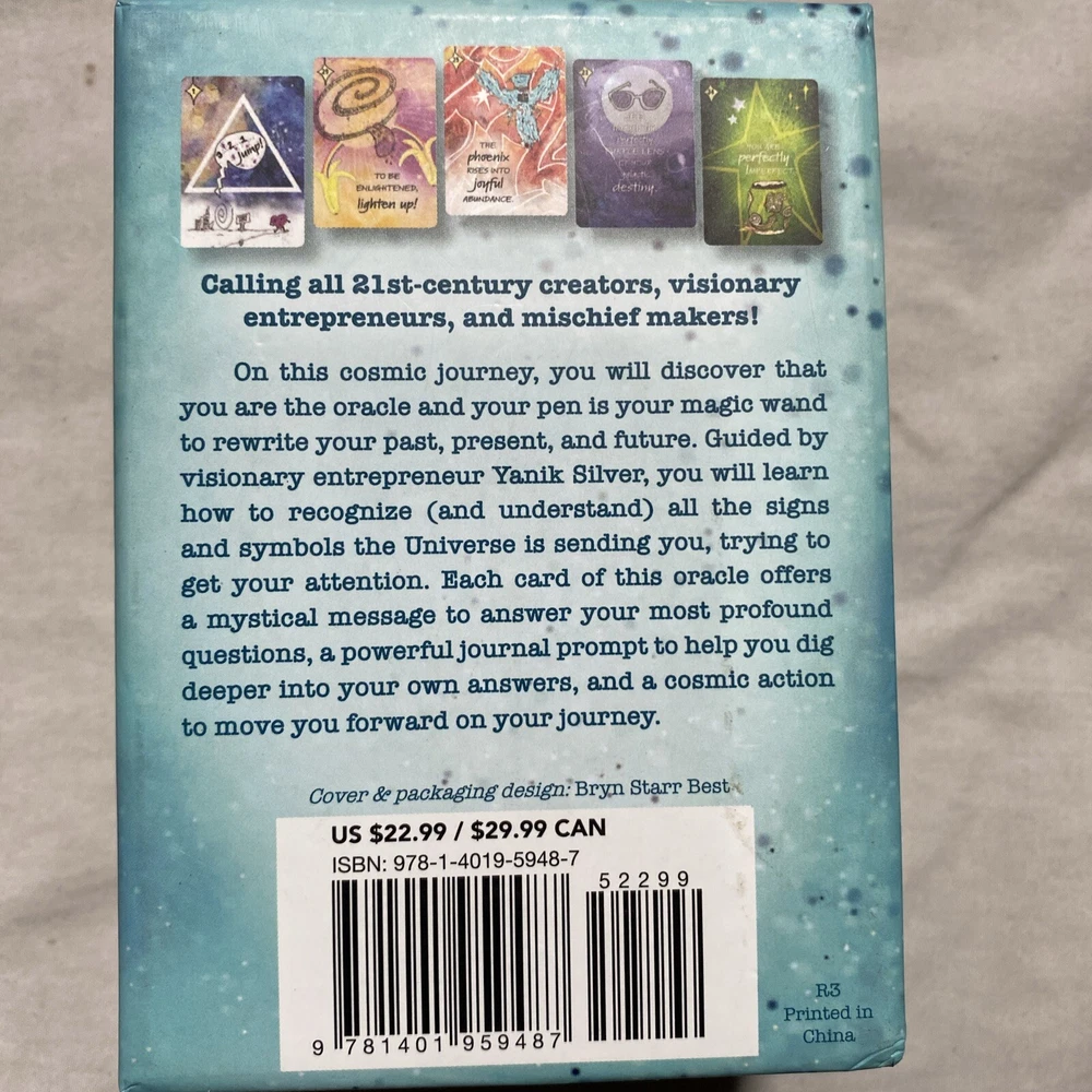 Item Width:4 inPublisher:HAY House, IncorporatedBook Title:Cosmic Journey Oracle : a 55-Card Deck and Journaling GuidebookAuthor:Yanik SilverGenre:Body, Mind & Spirit, Self-HelpItem Length:5.5 inItem Height:1.5 inFormat:Cards,Flash CardsNumber of Pages:55 Cards And 155 Page BookletPublication Year:2020Ex Libris:NoNarrative Type:FictionTopic:Divination / Tarot, Inspiration & Personal Growth, Journaling, CreativitySeller Notes:“Good condition and complete as seen in photos.”Language:EnglishItem Weight:13.7 Oz