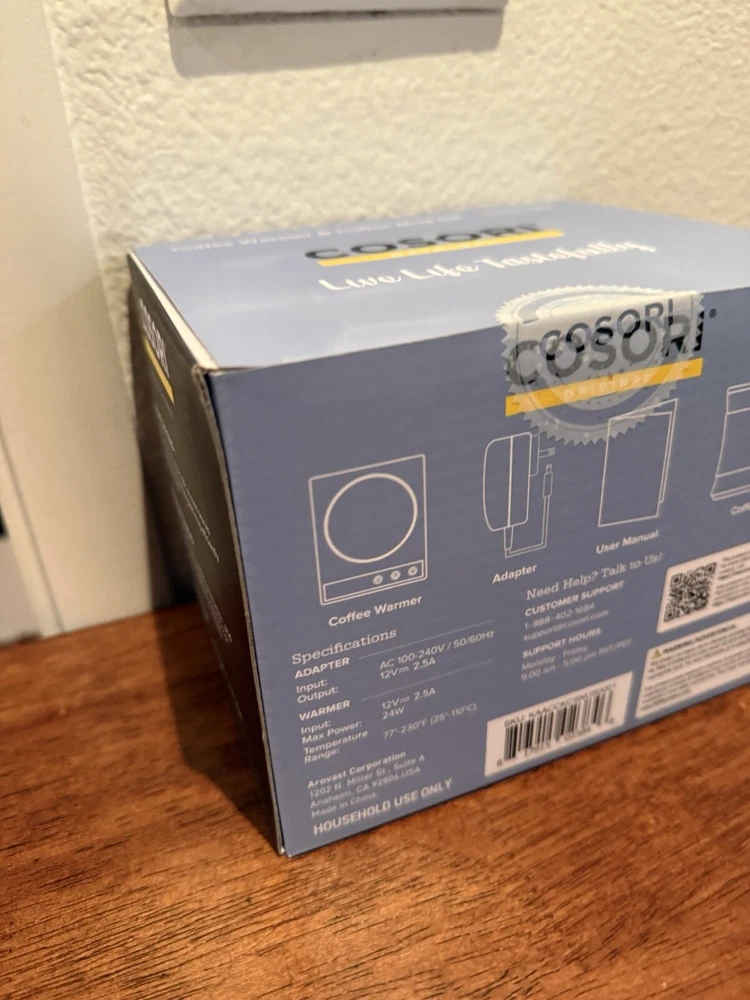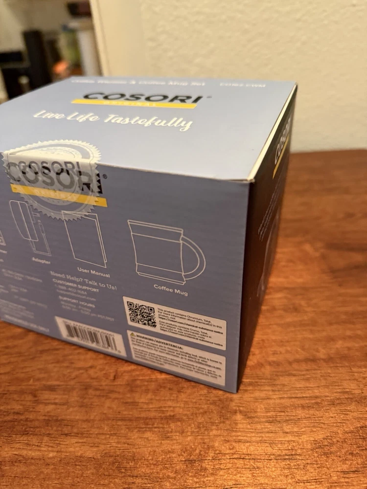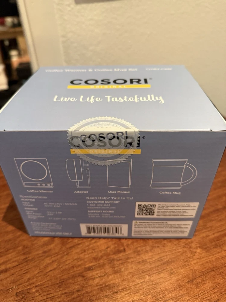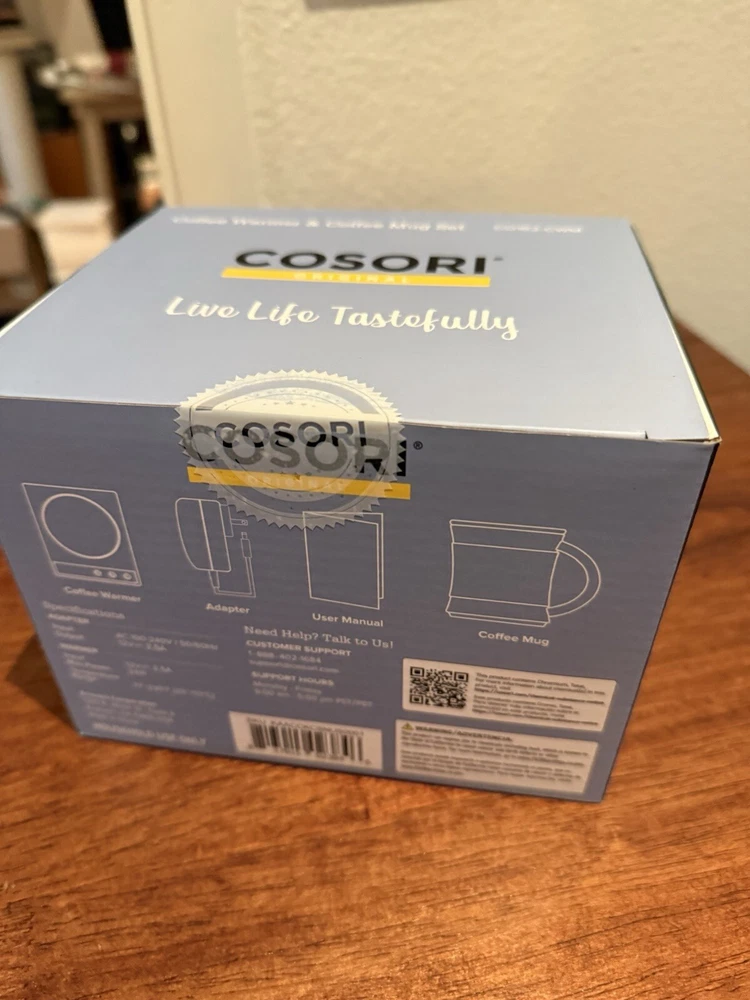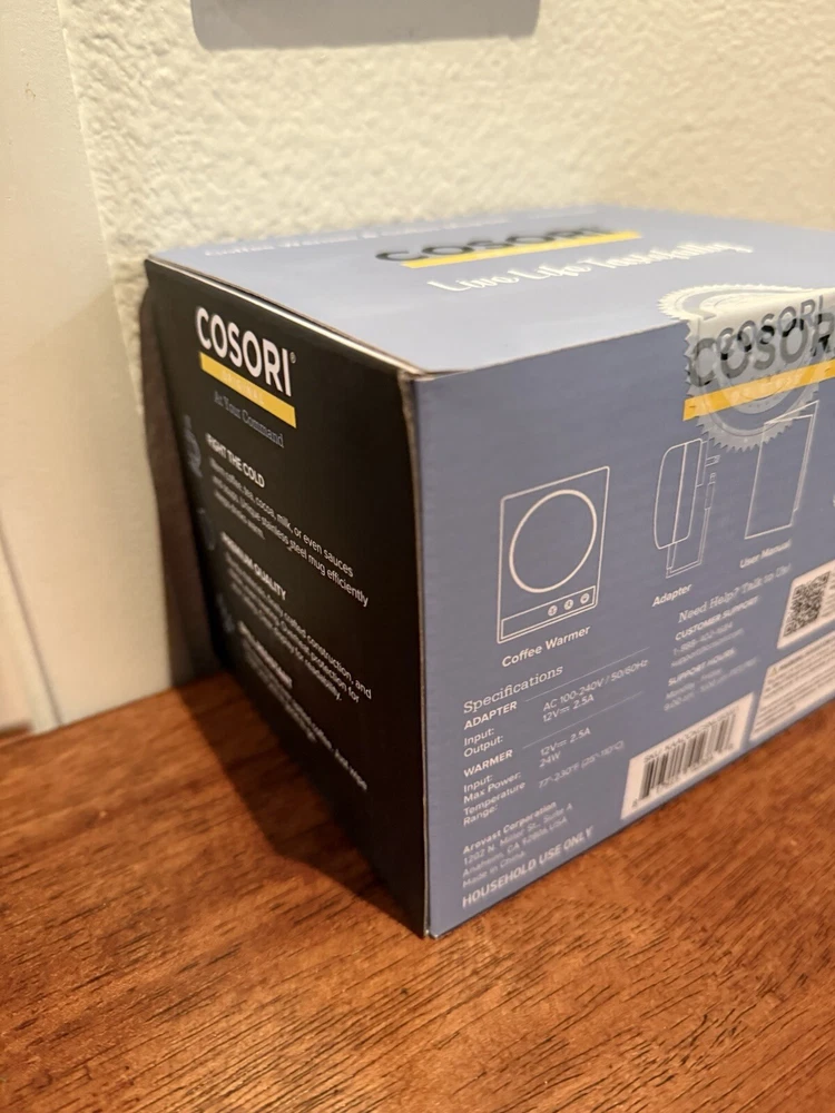 Cosori CO294-CW Coffee Mug Warmer Electric 24 Watt Beverage Cup Warmer, NIB!!!!. - Original automatic coffee mug warmer. - Compact and portable. Easily fit the the coffee warmer in a backpack or briefcase to take it to work or keep it on the kitchen counter. - Safety first. The coffee warmer won't turn on unless a mug is resting on it. After grabbing your mug, it'll maintain its temperature for 10 minutes before automatically turning off. - Spill-resistant. Enjoy added safey and durability with the spill-resistant coffee warmer. Its smooth surface also makes it easy to clean.