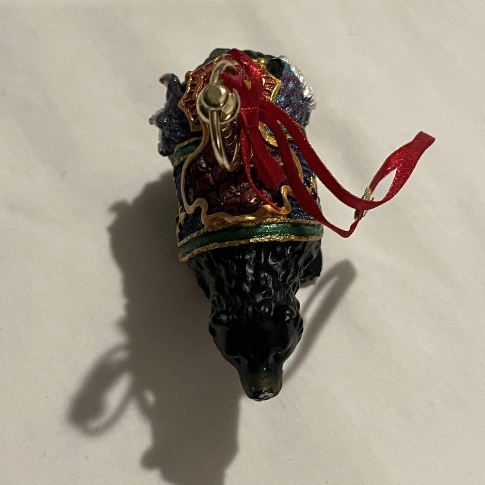 Add a touch of whimsy to your holiday decor with the Costco Carousel Black Bear Hanging Christmas Ornament. This charming ornament features an all-over multicolor design that's sure to brighten up your festive tree or any space in need of a bit of holiday cheer. Crafted from resin, this ornament is designed with a delightful bear shape that captures the spirit of the season. This piece is a part of Costco's ornaments collection and brings a unique holiday theme to your home. It's a mass-produced item, which means you can expect a consistent quality and design every time. The ornament is equipped for easy hanging, ensuring that it's ready to grace your Christmas celebration without any additional fuss.