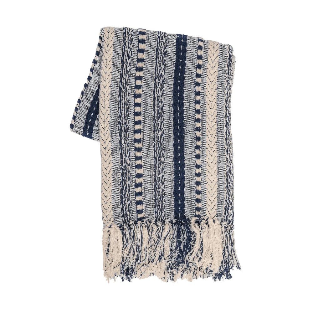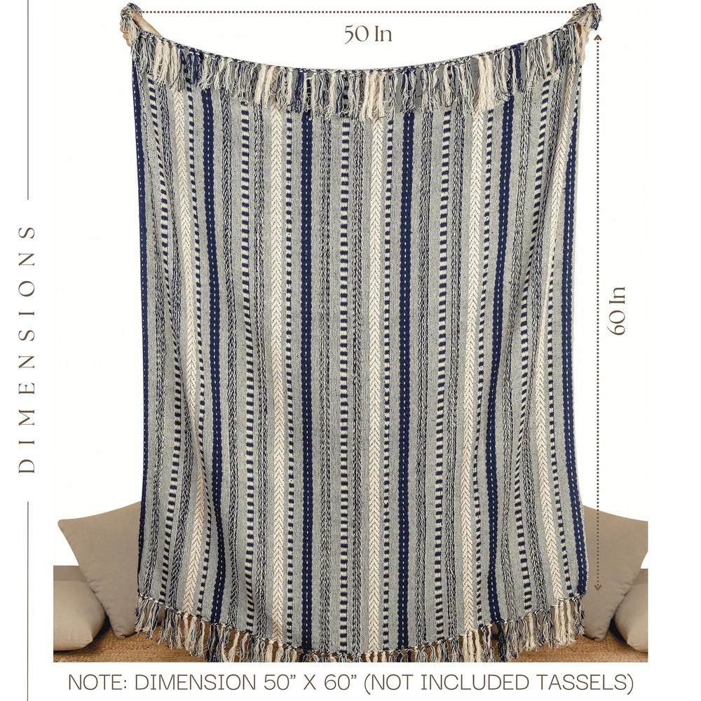 Design: This throw has a very chic and trendy look, throw over a couch or chair to add a splash of color and provide warmth on a cold night. Size and Material: Measuring at 50x60 inches, this throw blanket is perfectly sized for use on a couch, bed, or as an accent piece in any room. Made from 100% cotton, it is soft, breathable, and durable, ensuring long-lasting use. Craftsmanship: The throw blanket is crafted with attention to detail, ensuring its quality and longevity. The tassels are also carefully crafted to be long and sturdy. The combination of quality materials and skilled craftsmanship results in a throw blanket that is not only beautiful and functional but also built to last. Multipurpose: This throw blanket is not only ideal for adding warmth and style to your living space, but it is also multipurpose and can be used for a variety of activities. It can be used as a picnic blanket, camping blanket, or as a cozy addition to your car for long road trips. Easy Care and Maintenance: The throw blanket is machine washable separately, making it easy to care for and maintain its quality. It is recommended to tumble dry on low to ensure its longevity and to avoid ironing as it may damage the tassels.
