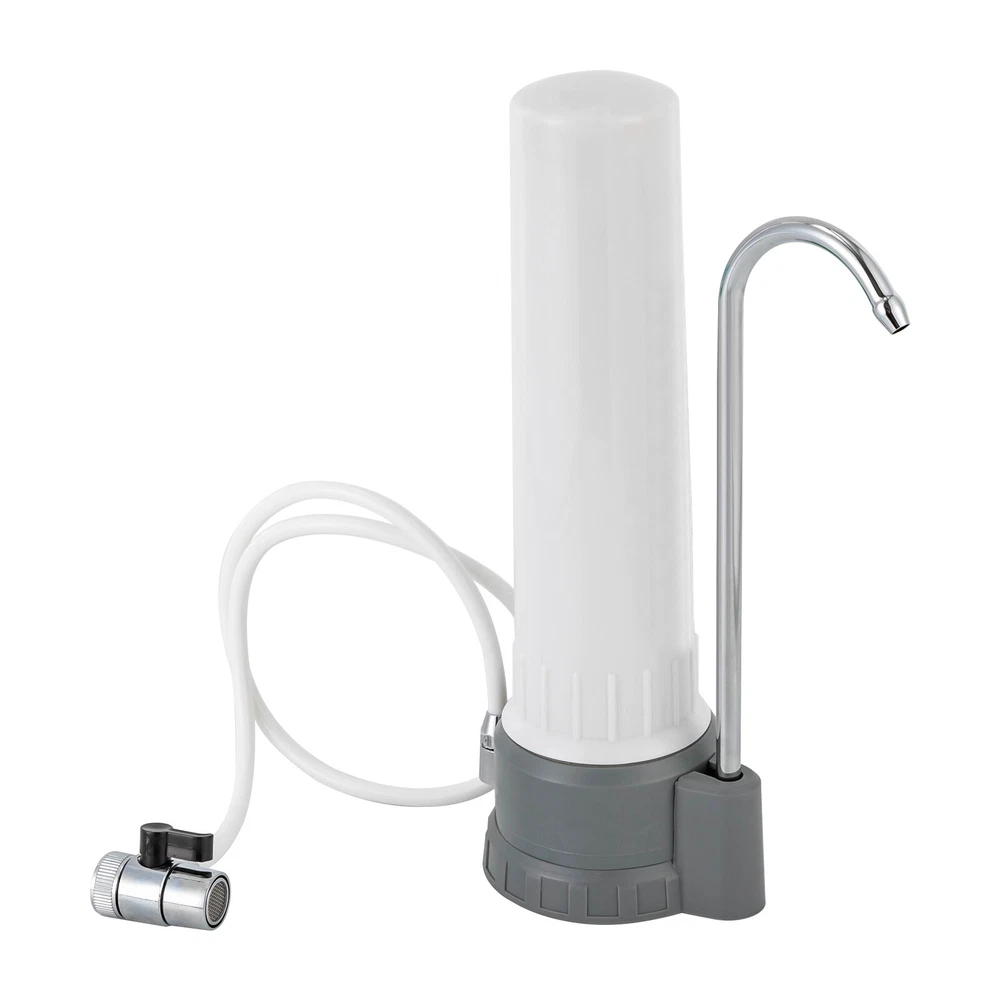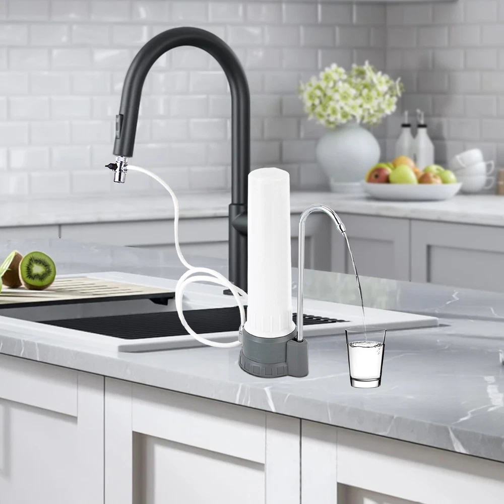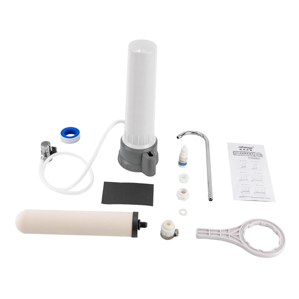 Countertop Water Filter Kitchen Bathroomr White Ceramic Water Filtration System Description Say goodbye to the hassle of bulky water dispensers and the constant need for bottled water. With our innovative countertop ceramic water filtration system, you can enjoy the luxury of fresh, filtered water directly from your tap. Its elegant design seamlessly blends with any kitchen decor, becoming a centerpiece of practicality and sophistication. Specifications Model No: UF320-A1/A2 Material: ABS, Stainless Steel, PP, PVC Color: White Shape: Columnar Water Flow Rate: ≤150L/39.6gal/H Filtration Precision: 0.1 Micron Applicable Water Pressure: 0.2-0.4MPA Applicable Water Source: Municipal Water Working Temperature: 5-40℃/41°F-104°F Installation Type: Countertop Power Source: Without Electricity Filter Cartridge: Sintered Carbon Ceramic Cartridge Gross Weight: 1.2kg/2.6 lbs Net Weight: 1.02kg/2.2 lbs Product Size(D*H): 12×31.5cm/4.72×12.4in Package Size: 34×14×14cm/13×5.5×5.5in Package Included 1* Countertop Water Filter 1* Colorimetric Card for Residual Chlorine 1* Chinese Manual All Accessories of Installation Key Features Multiple Filtration: It first adopts diatomaceous earth ceramic filter core to pre-treat the sediments, suspended solids, rust, red worms, colloids, and impurities in the water, and then further deeply filters the residual chemical pollutants in the water through high-quality activated carbon sintered charcoal rods, which effectively filters residual chlorine and odors in the tap water, and improves the taste of the water, making it sweet. Fashionable Appearance: The product adopts a white color with a simple and fashionable style. The smooth and simple lines can make it match well with any kind of room decoration. Good for Your Health: With the double-layer filtration, it not only makes you feel more at ease to drink, but also maintains calcium, magnesium, potassium and other minerals during the filtration process, which is good for your health. Energy-saving& Environmental-friendly : It can be used without plugging in and also reduces the use of plastic bottles, which not only saves you money but also contributes to environmental protection. Washable Cartridge: Washable cartridge not only avoids secondary pollution caused by the accumulation of impurities for a long time, but also saves money on consumables. Ideal Gift: Designed to revolutionize drinking water experience and keep healthy, this compact and stylish machine is a great choice as a gift for your friends and family. Build to Last: The stainless steel faucet is safe to use, corrosion and rust resistant , and the PVC inlet pipe has the advantage of low fluid friction resistance to withstand long periods of time. Easy Installation: It can be installed without drilling holes or hiring a plumber. Simple twist-on installation makes it easy to set up. Also, it connects easily to most standard kitchen taps and faucets. By twisting the switch, tap water and filtered water can be switched quickly. Guaranteed Customer Service: Our friendly customer service team would be happy to solve your issues with our landscape spotlights. If you have any issues, feel free to reach out to us. Details Clear Marking: The surface of the product comes with a sticker that clearly identifies the name and function of the cartridge, making it easy for you to replace and purchase the cartridge in the future. Stable ABS Base: The ABS base with a diameter of 4.2 inch allows for stable placement of the product. Application It is suitable for being installed in kitchens, bathrooms, caravans or offices y for cooking, drinking, cleaning and skin care. Also, it is suitable for countertop water filtration system. How to Install the Cartridge Step 1: Take the cartridge out and remove the protective film. Step 2: Remove the filter bottle by unscrewing it with a wrench. Step 3: Install the filter cartridge at the water purifier base. Step 4: Install the filter bottle onto the water purifier base and tighten it with the wrench again Step 5: Plug the water tap into the hole of the water elbow, the initial installation of the water purifier is complete! Notes When cleaning, please rotate out of the cartridge and then gently scrub the surface of the cartridge with sandpaper to clean the impurities, do not use detergent, chemical cleaning fluid, or wire ball to clean. Cleaning the filter cartridge normally can reduce secondary pollution and prolong the service life of the filter cartridge. Before use, please release 3-5 gallons of water to rinse the filter, which will better enhance the drinking experience If the faucet has an aerator, you need to remove the aerator to install the faucet water filter. Please allow the slight color difference caused by the shooting light and 1-3cm error due to manual measurement, and make sure you do not mind before you order. Payment Delivery details Terms of sales About us Contact us Payment We accept ebay payment 。 Fees such as import duties, taxes are not included in the item price or shipping costs. These charges are the buyer's responsibility. Delivery details Shipping: 2-9 working days to: USA Terms of sales We maintain high standards of excellence and strive for hundred percent customer satisfaction. Feedback is very important to us. We hope that you contact us immediately before you give neutral or negative feedback, so that we can address your concerns. It is impossible to address issues if we do not know about them! About us Your satis faction is our ultimate goal. We work hard to earn your trust and future business. Our certified technicians have tested each item before shipping. The unit comes with 1 year limited warranty on all manufacturing defects. a) If you receive a defective item, you may return it or ask for a discount. Please contact us within 14 days after you receive the package. b) What you returned must be intact and in its original packaging as re? u. Customer is responsible for shipping cos