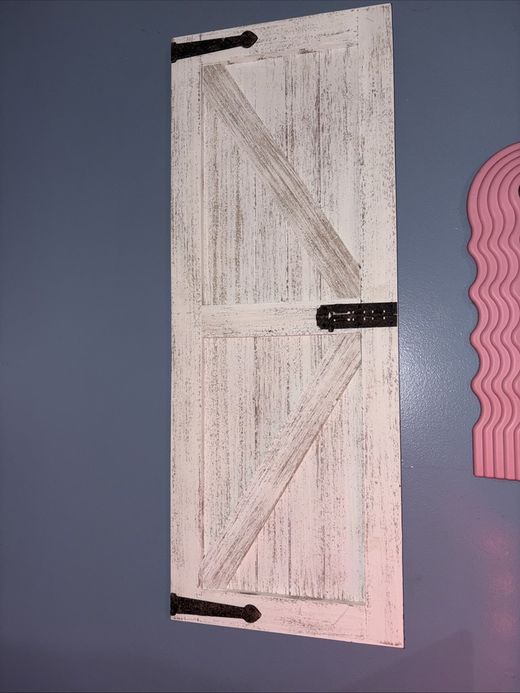The Country Barn Door Aesthetic Wall Panels by Hobby Lobby are designed to add a rustic charm to any interior decor. Made from wood and wood veneer, these rectangular wall panels feature a beige color and painted finish, giving them a unique and authentic look. Easy to hang or wall mount, these medium-sized panels are perfect for creating a country-style accent in any room. Perfect for those looking to enhance their space with a touch of farmhouse flair.