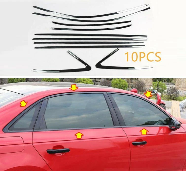 Cover trim For 2015-2020 Audi A3 S3 Sedan Stainless Black Car Window Trim Strip Attention: Because the same model car may be differently produced in different country. Please ensure the part of your car like our picture shows, or it will not fit, if any differences, please contact with us before purchase, thanks! Item Fitment: Fit For 2015-2020 Audi A3 S3 Sedan Stainless Black Car Window Trim Strip Cover trim (The Compatibility Is Just For Reference. Please Compare With Your Original One Before Purchasing! ) Item Description: Condition: 100% Brand New Material: Stainless Black Color: Same as in the pictures Made in an ISO 9001 facility to ensure good quality Easy installed and No modification needed,double side Automotive tape at the back Package Include: 10 pcs/set(Sold as seen, please ensure suitability carefully before purchase) This item doesn't come with manual installation Installation method: 1. Clean the location of the installation with rubbing alcohol before proceeding. (make sure to remove any grease, wax or dust etc) 2. Please ensure that the product completely fits before proceeding with installation. (Note: if there any questions or if the product does not fit properly, please contact us) 3. Remove the high strength double-sided adhesive from the back of the plate. In the case of a relatively low temperature, heat installation location, and plate with a hair dryer or a heat gun on low setting 4. Carefully place the product in desired location and press down for about 1-2 minutes, (Note: do not wash your car for 24-hours. The adhesive should be cured after 12-hours) 5. The installation is complete