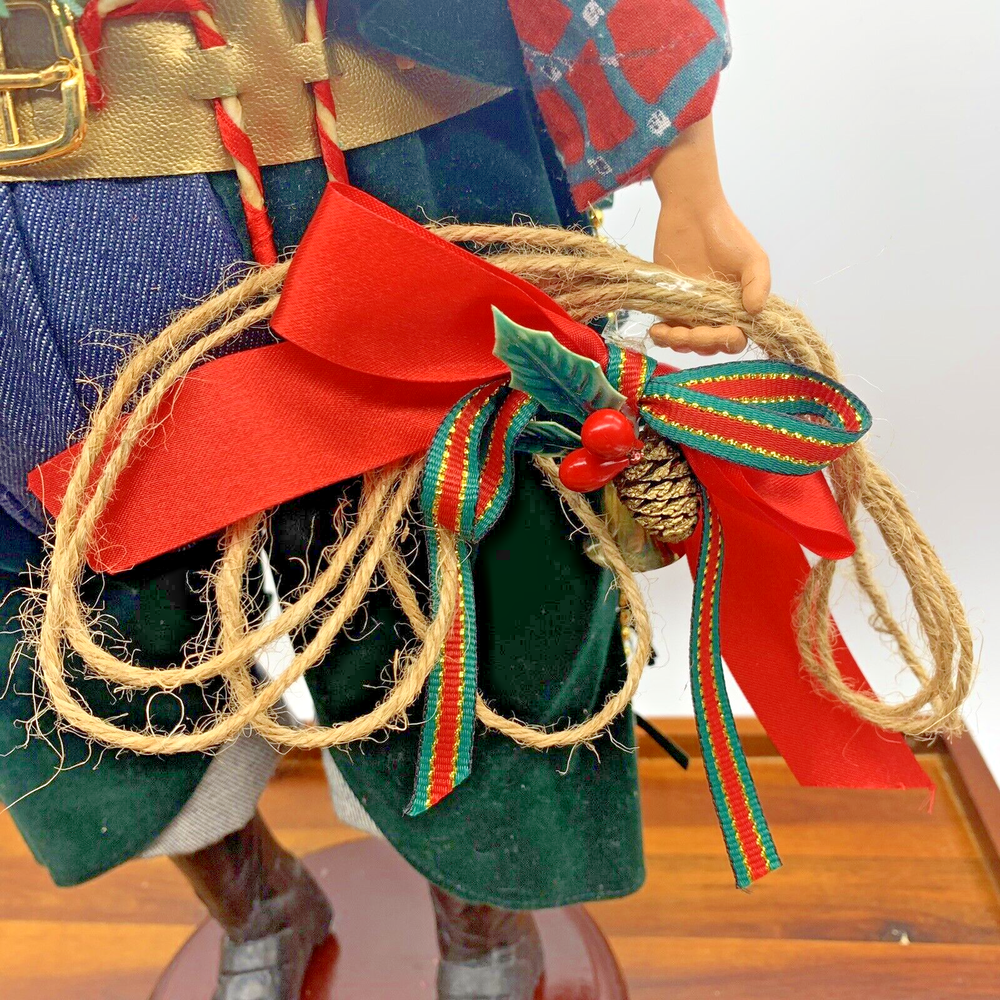 Cowboy Western Santa Doll Wild Wild West Boots Lasso Rope Figurine Doll 19" Candy Canes Holly Wreath Red Denim Blue Old World Christmas Was still in the original box! It's not a big deal, but one foot is a little loose (fyi). Stands roughly 19 inches tall, very large! This is the Western Santa Doll from Armchair Shopper, House of LLoyd, Inc. (Please look carefully since our vintage/antique items are sold "as found" - Please zoom in on photos for a better view of the item's condition. We do our absolute best to research all items we sell. If you ever have questions on a listing, please reach out to me! *We will always package items securely and with care* Thank you for viewing!