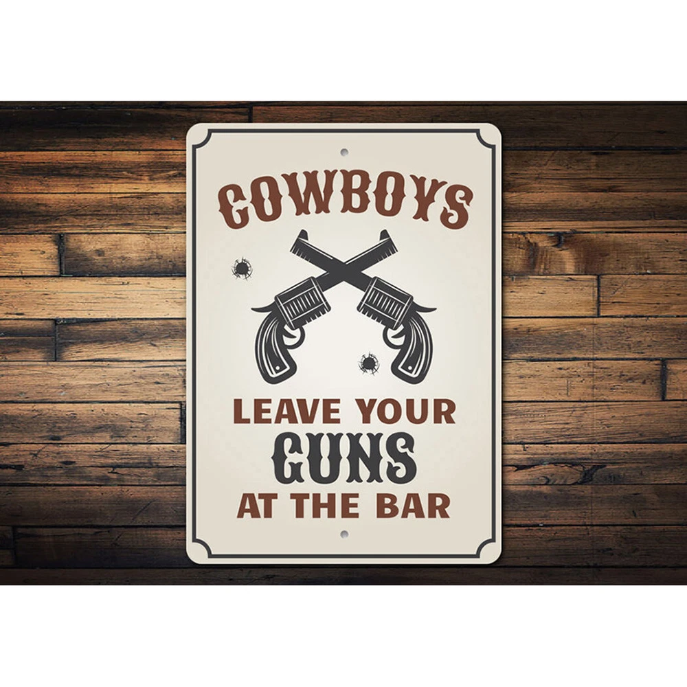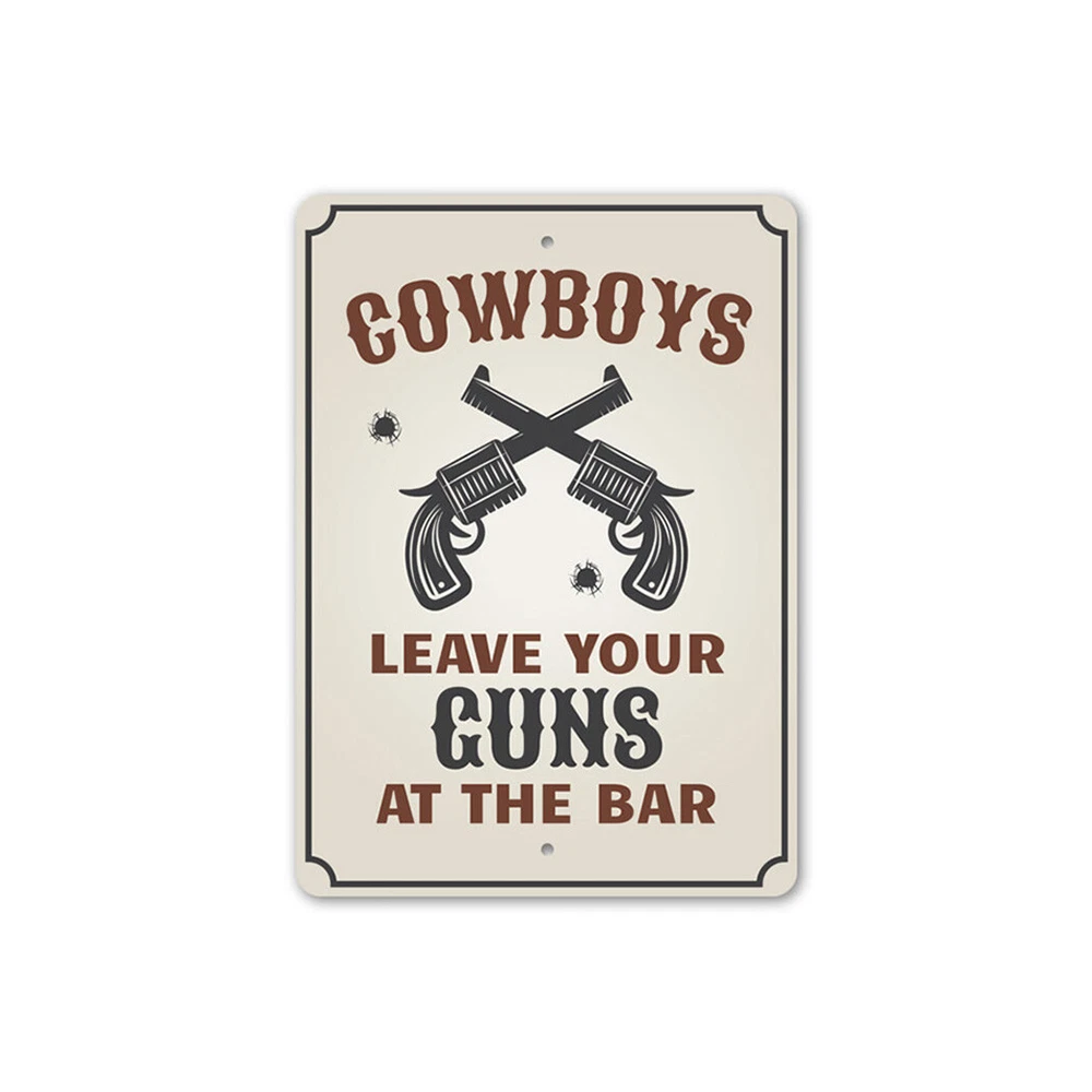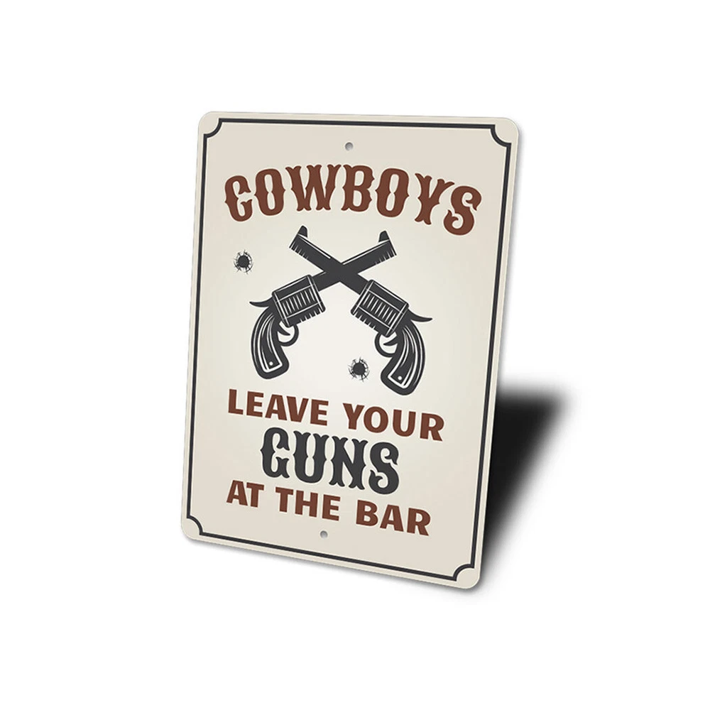 The Lizton Sign Shop Product Description Cowboys Leave Your Guns at The Bar, Party Barn Sign, Cowboy Guns, Cow Metal Sign **there may be slight variations in color and text spacing, however your sign will be very similar to the image above. Quality Aluminum Street Signs Sign Information Aluminum Brand New Sign Comes with rounded corners and pre-drilled for easy hanging. We use the highest quality materials - 100% USA-made! Great Gift Idea - Our signs truly make a one of a kind gift. Personalize the sign with the text you want to add. Custom text for the sign can be sent to us via email. A BRAND NEW SIGN!! All of our street signs are made of premium materials. The sign itself is made of aluminum and will never rust providing years of enjoyment indoors and outdoors. No Cheap plastic!! The Lizton Sign Shop specializes in quality personalized custom aluminum signs for any occasion. These make the perfect sign for any man cave, office, basement, garage, college dorm, kids bedroom, game room, bar, pub, tavern or countless other places. *Colors may vary slightly from one computer screen to the next but the image should be very close. All content and designs are subject to copyright and may not be reproduced in any form. Payment Methods We would prefer payment to be made through paypal but we also accept all major credit cards. If you select the credit card option please contact us after you make your purchase and we can walk you through the steps to make a secure payment. Return Policies We will accept returns within 30 days of the purchase date. The buyer is responsible for any costs to return the item or items. Returns will only be accepted for items that were damaged in shipping or if we made an error in the manufacturing of your item, i.e. spelling error.