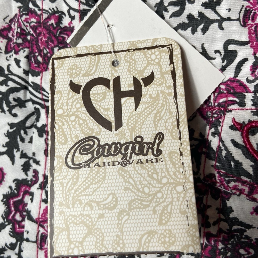New with tags pink and green with gem snaps and studded details on back and pockets. Small. From Cavendar’s by CW Cowboy.