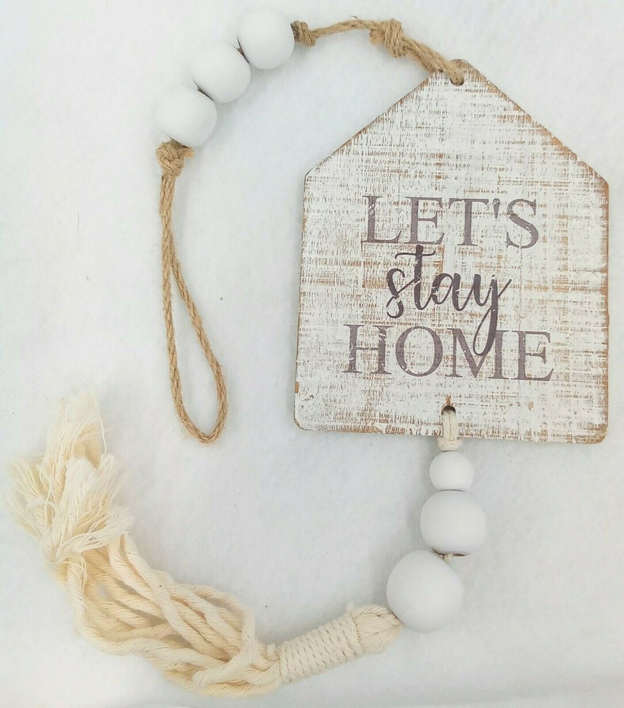 "Let's Stay at Home" Wood Sign with Beaded Jute Hanger & Beaded Cotton Tassel. Measurements are approximately 4 inches wide by 5 inches long. Sign is whitewashed & distressed. Beads are painted wood. Hanger is Jute. Tassel appears to be thick cotton twine. Condition is Brand New/Unused. If you have any questions or concerns, please contact us. Please check out The Burly Owl Lady eBay store for more home decor goodies! Shipped USPS. We ship vintage and new items. We carefully pack with care to ensure the safety of each item. We do not pass these packaging costs onto the buyer. Furthermore, we do not charge any extra fees for handling. We only charge for the USPS shipping charge. We do monitor shipping prices frequently. In most cases, we do find the USPS to be the most inexpensive way to ship our products. We try to be as detailed as we possibly can in our photos and descriptions. We try to mention any imperfections in our vintage items. We may miss things from time to time or our photos may not be enough clarification for you to see the item. We will be glad to answer any questions or send you more photos. If at any time, you have a question or issue, please contact us immediately. We will contact you within 24 hours. We want to make sure you have a good experience in purchasing any of the products. If you are happy with your purchase, please leave feedback. It will help us to grow and offer more great items in our store! Thank you for your interest in one of the many products in our eBay store! Renee Burly Owl Lady