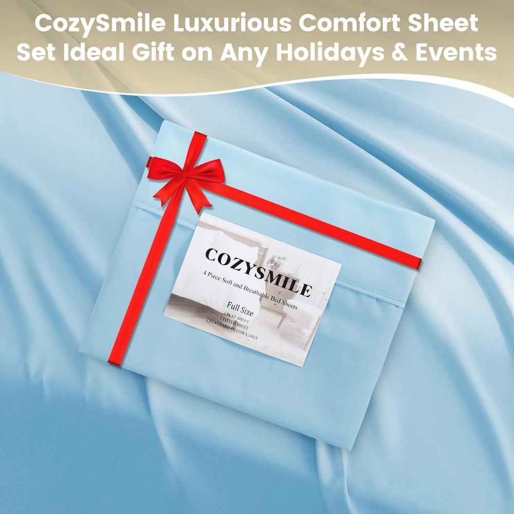 CozySmile Breathable Ultra Soft Full Sheet Set - Hotel Luxury 4 Piece Deep Pocket Sheets for Full Size Bed, Fits 16" Mattress, Easy Care Wrinkle Free Bedding Sheet and Pillowcase Set, Sky Blue Color: Sky BlueFeatures: EXCEPTIONAL SOFTNESS - CozySmile offers a luxury bedding sheets and pillowcases set crafted from hydro-brushed high-quality microfiber, indulge in the unparalleled smoothness and softness that envelops you day and night. 16" DEEP POCKET EASY FIT - All-around stretchable elastic fitted sheet and with generous dimensions, our bed sheets were designed to securely fit all mattress depths from 6 to 16 inches deep. PERFECT GIFT IDEA - CozySmile bedding sheet sets are the ideal choice for a thoughtful gift. With their wrinkle and pill-resistant properties, they ensure a neat and clean appearance. The breathable design keeps you cool and well-rested throughout the night. SAFETY & DURABILITY - Our bed sheets have passed rigorous OEKO-TEX Standard 100 testing, ensuring they are free from harmful materials for your peace of mind, they are also expertly crafted for long-lasting durability with 1000 thread count. VERSATILE SIZES & COLORS - Experience the perfect fit with our bedding sheet set, available in 6 sizes (Twin/Twin XL/Full/Queen/King/Cal King) and 9 elegant colors. Each set includes a fitted sheet, flat sheet, and 2 pillowcases (Twin size includes 1 pillowcase). Package Dimensions: 10.0 x 7.4 x 4.3 inches CozySmile Breathable Ultra Soft Full Sheet Set - Hotel Luxury 4 Piece Deep Pocket Sheets for Full Size Bed, Fits 16" Mattress, Easy Care Wrinkle Free Bedding Sheet and Pillowcase Set, Sky Blue Color: Sky Blue Features: EXCEPTIONAL SOFTNESS - CozySmile offers a luxury bedding sheets and pillowcases set crafted from hydro-brushed high-quality microfiber, indulge in the unparalleled smoothness and softness that envelops you day and night. 16" DEEP POCKET EASY FIT - All-around stretchable elastic fitted sheet and with generous dimensions, our bed sheets were designed to securely fit all mattress depths from 6 to 16 inches deep. PERFECT GIFT IDEA - CozySmile bedding sheet sets are the ideal choice for a thoughtful gift. With their wrinkle and pill-resistant properties, they ensure a neat and clean appearance. The breathable design keeps you cool and well-rested throughout the night. SAFETY & DURABILITY - Our bed sheets have passed rigorous OEKO-TEX Standard 100 testing, ensuring they are free from harmful materials for your peace of mind, they are also expertly crafted for long-lasting durability with 1000 thread count. VERSATILE SIZES & COLORS - Experience the perfect fit with our bedding sheet set, available in 6 sizes (Twin/Twin XL/Full/Queen/King/Cal King) and 9 elegant colors. Each set includes a fitted sheet, flat sheet, and 2 pillowcases (Twin size includes 1 pillowcase). Package Dimensions: 10.0 x 7.4 x 4.3 inches × × × × × × × × × × Buy now and save! Tell a friend Watch now Postage info Click the Postage tab above the listing description for more info Click the Postage tab above the listing description for more info! Additional delivery notes PICK UP OPTION Sorry, our items are NOT available for pick-up. PAYING VIA PAYPAL We accept PayPal on our all our items so you can shop with confidence. Simple choose the PayPal option when proceeding through the checkout. Additional Information No additional information at this time Ask seller a question You might also like ELEFOCUS Hidden Cameras,WiFi Wireless Camera,Nanny Cam,Spy Camera,Mini Camera,Sm Mini Body Camera Video Recorder, 1080P Small Portable Wearable Hidden Cameras wi Vancle 4 Pack Bands for Fitbit Inspire 2 Bands/Fitbit Inspire HR for Women Men, 2 Pack-Earbuds for iPhone Headphones Wired with Earphones [MFi Certified](Built- Contact To contact our Customer Service Team, simply click the button here and our Customer Service team will be happy to assist. Ask seller a question © My Store Postage Click the Postage tab above the listing description for more info Payment Accepted Payment Methods PayPal Returns Returns are accepted Items must be returned within 30 days of the auction ending Buyer will pay for return shipping. eBay integration by