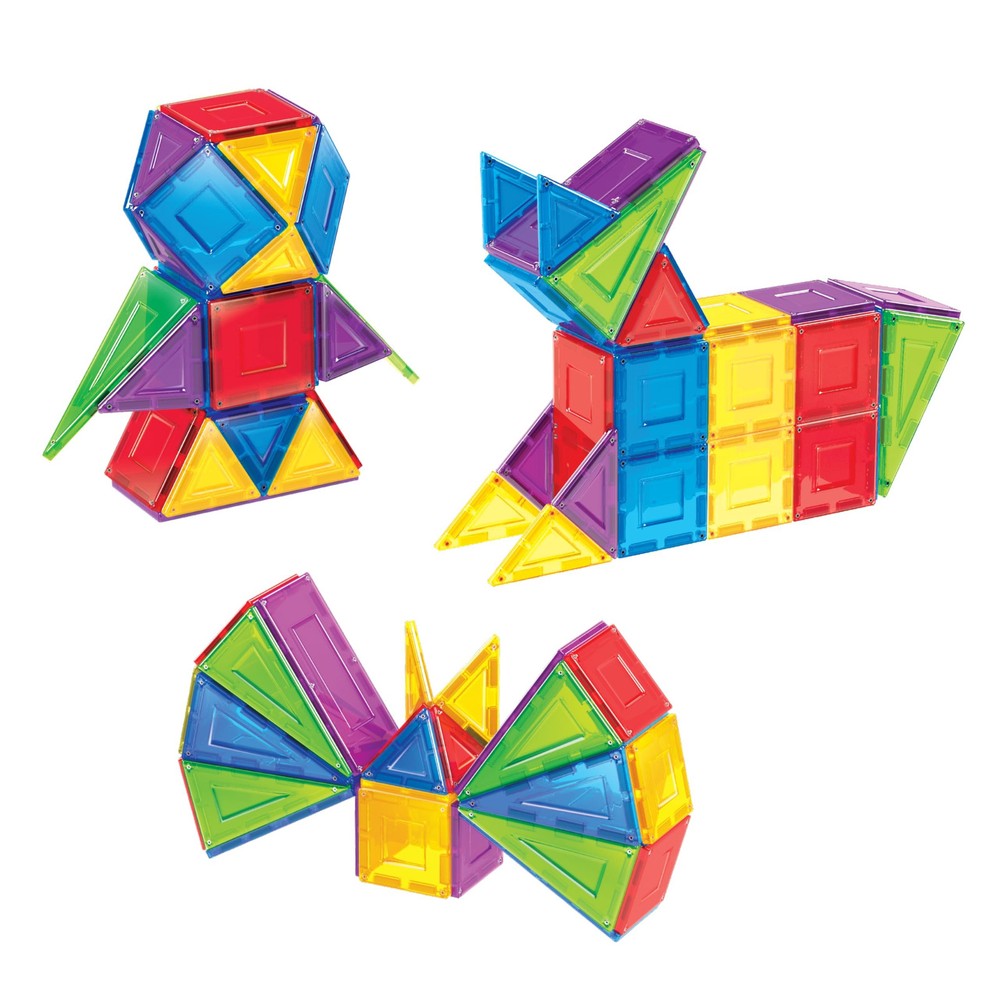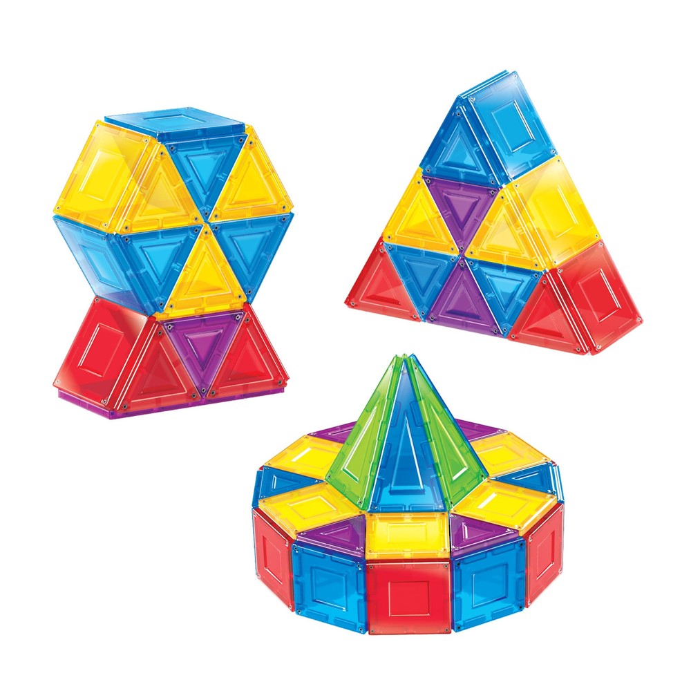 Cra-Z-Art Magrific 3D Magnetic Tile 70 Piece Set - Colorful Magnet Building Tiles with 3D Geometric Shapes - STEM Skills for Ages 3 and Up Imagine, create and build using the magic of magnets – Magrific 70 Piece Set features mega magnetic power, fun tinted colors, 5 geometric shapes and endless play patterns Magrific 70 piece magnetic tile set comes with shapes that feature magnets on all sides allowing you to build strong 3D shape Foster STEM Science and Math skills in a fun and colorful way! Magrific 70 pc magnetic tile set comes with 5 geometric shapes in 5 tinted colors; red, purple, green, blue and yellow, and a storage bag Magrific 70 pc magnetic tile set is great for ages 3 and up