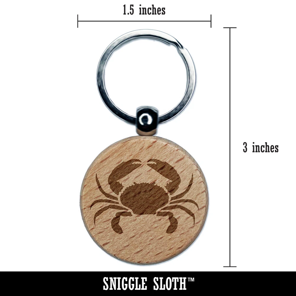 Crab Beach Ocean Engraved Wood Round Keychain Tag Charm