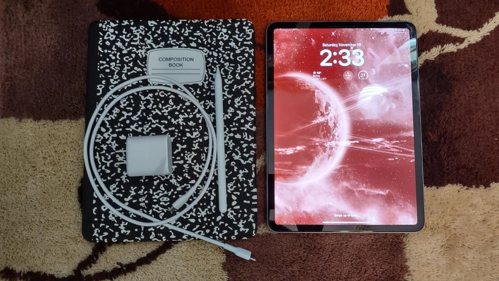 The iPad works as should (audio/wi-fi/bluetooth/front and rear camera/touch screen operation/apple pencil gliding); but the screen is cracked. The rest of the iPad's body is imperfection-free. You will receive the 4th gen iPad pro, 2nd gen Apple pencil, the power/sync cord, 20w power adapter, and the 'composition book' ipad case. A glass screen protector has been installed over the cracked screen. Battery life is great. Apple 2nd Generation pencil works as should;and the battery life is also, great. No box is included, sorry.