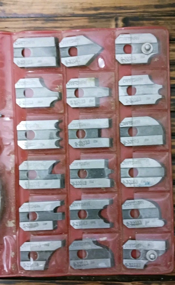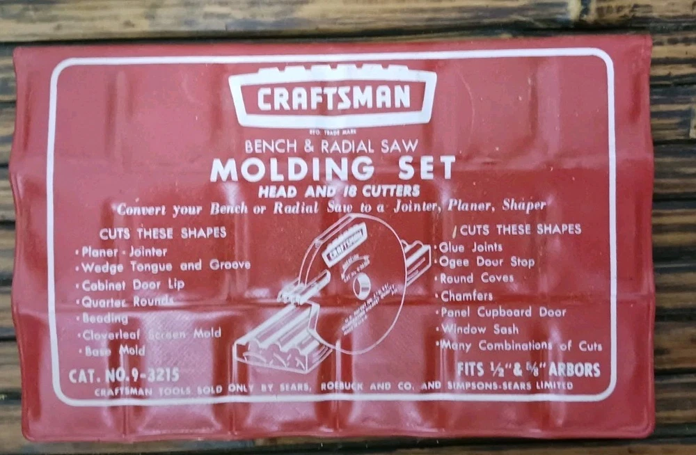 The Craftsman Sears Molding Set 9-3215 is a high-quality power tool accessory designed for use with bench and radial saws. The set includes 18 different cutters, allowing for a wide range of molding options. With a trusted brand like Craftsman, you can expect precision and durability in your woodworking projects. This molding set is a great addition to any workshop, especially for those who enjoy working with wood and creating custom pieces.