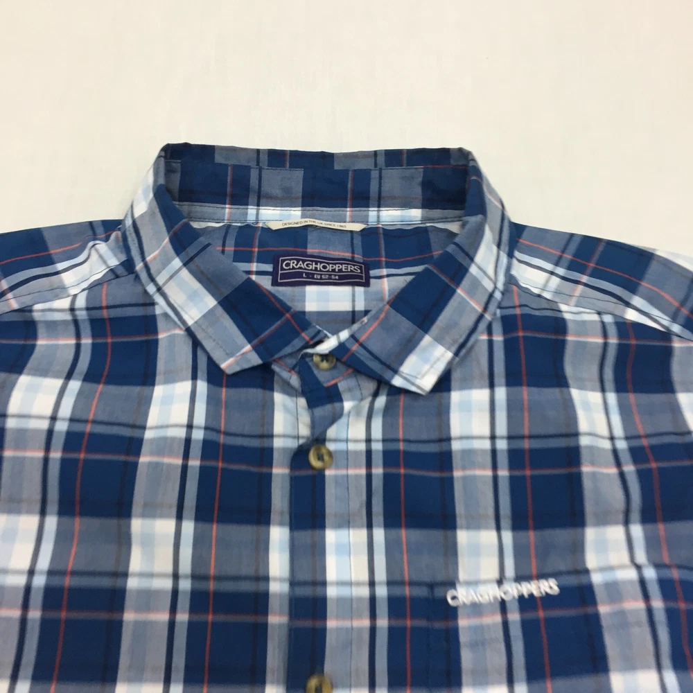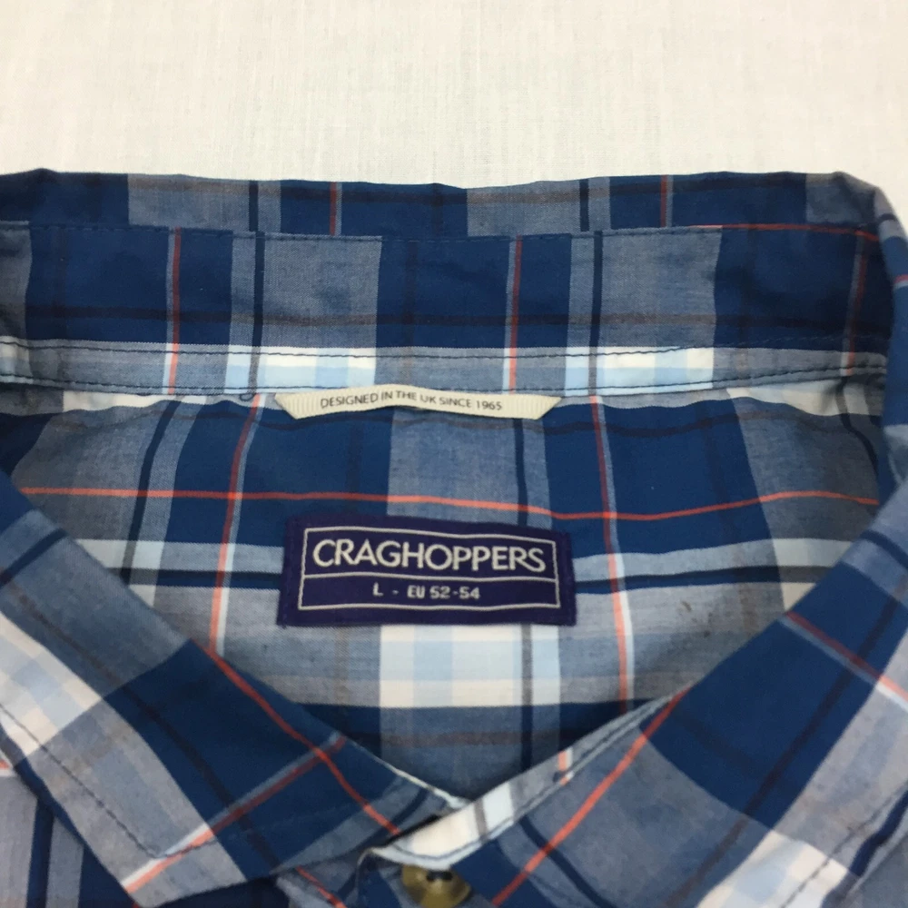 Department: Men Type: Button-Up Accents: Button Size Type: Regular Handmade: No Occasion: Business, Casual, Formal Country/Region of Manufacture: Unknown Brand: Craghoppers Size: L Seller Notes: “Good used condition, check below for full description & photos.” Season: Autumn, Spring, Summer, Winter Sleeve Length: Short Sleeve Garment Care: Machine Washable Personalise: No Colour: Blue Fabric Type: Canvas Neckline: Collared Pattern: Check Closure: Button Theme: Classic Material: Cotton Blend Features: All Seasons Fit: Regular Vintage: No Collar Style: Button-Down