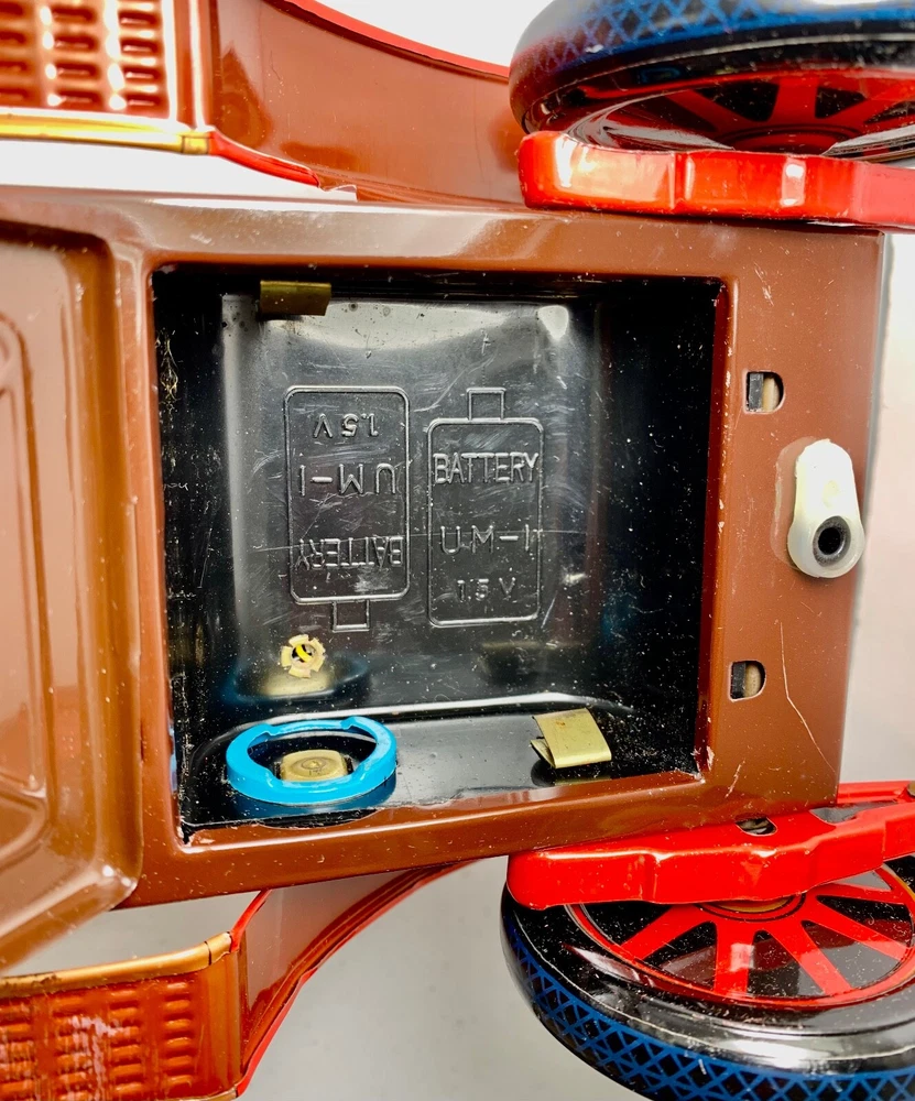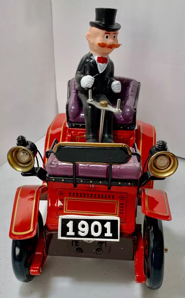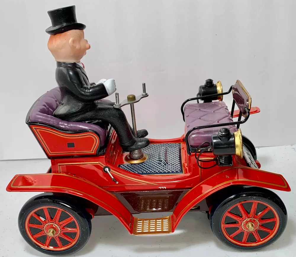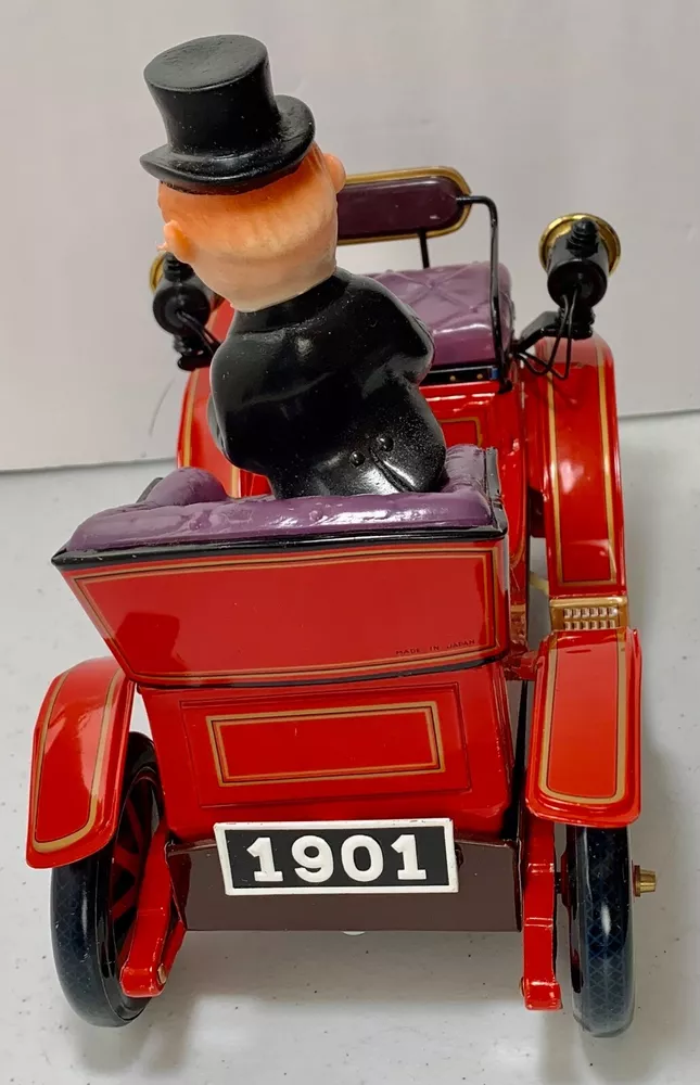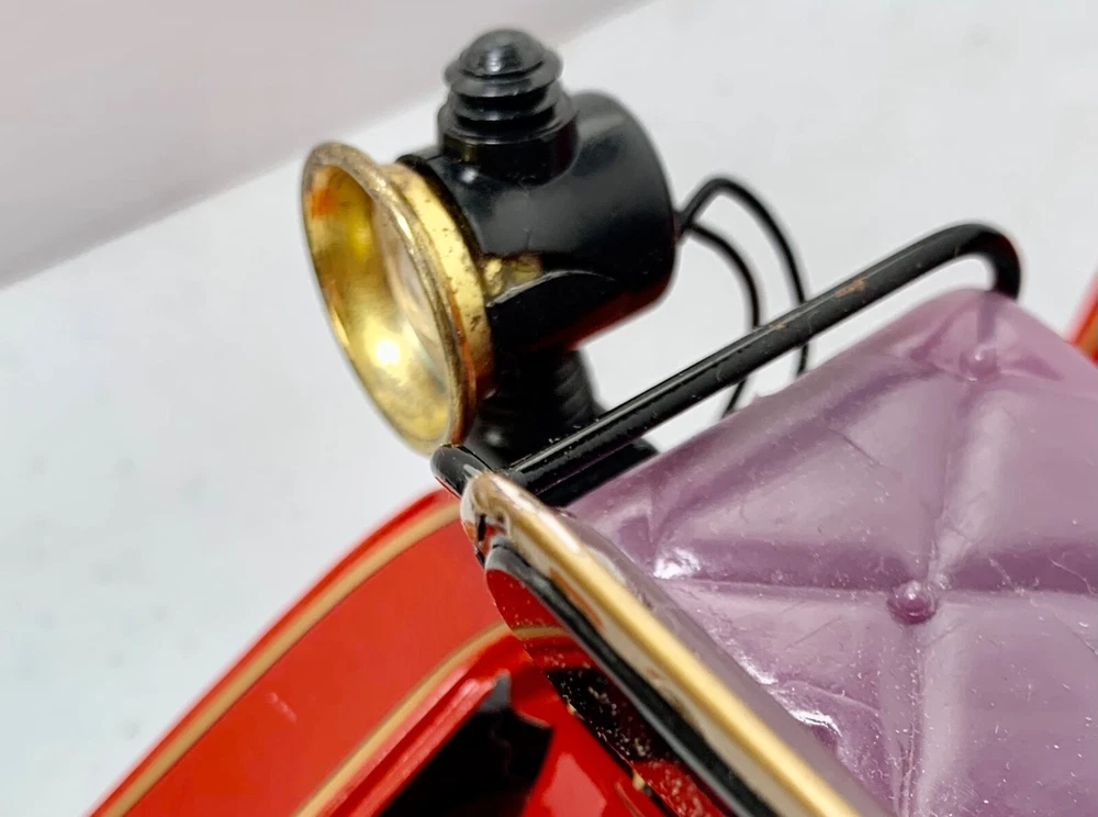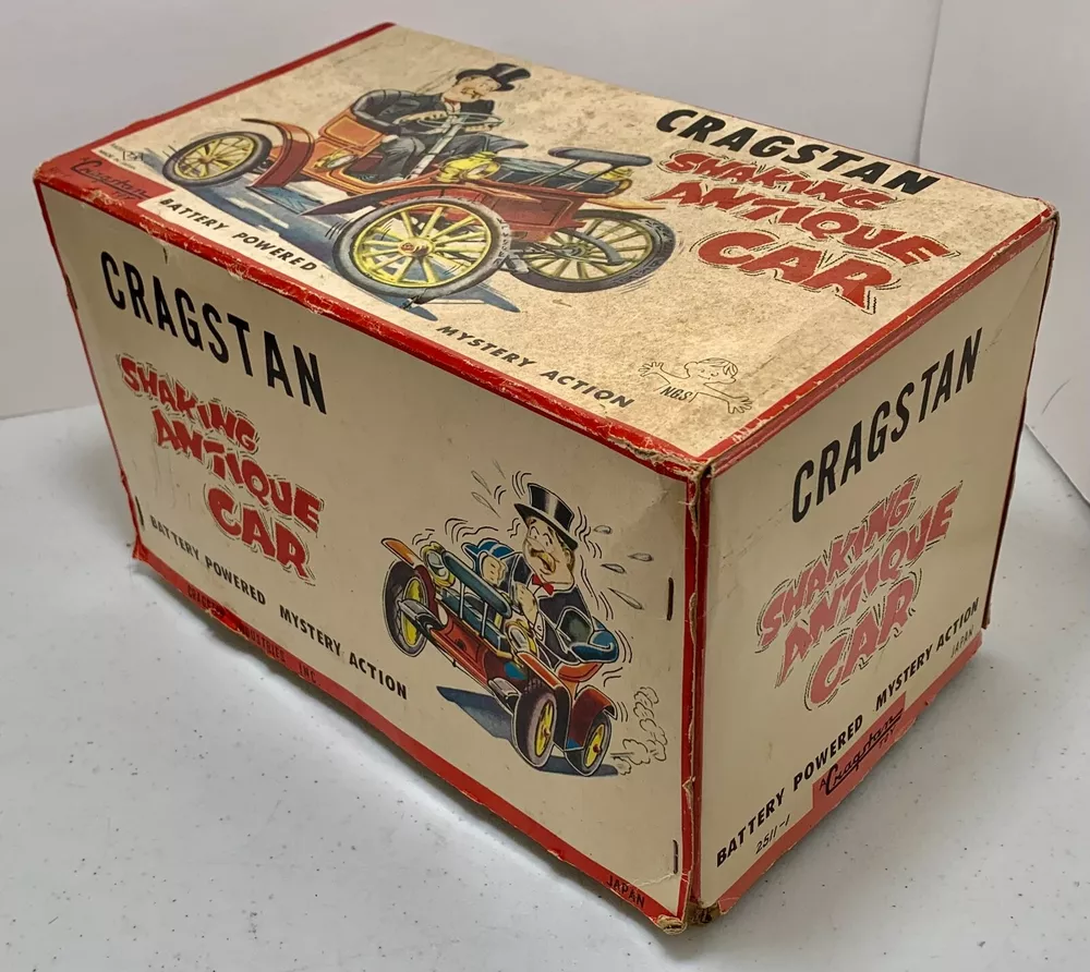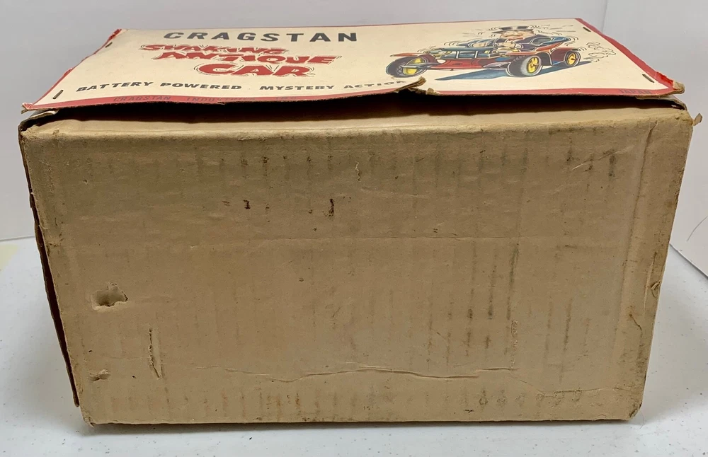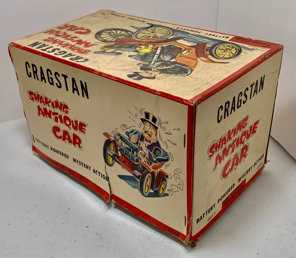 Estate Find ~ Vintage untested Cragstan Shaking Antique Car Toy Tin Metal Battery Powered with Original Box. Toy looks like it's never been played with but still does show some cosmetic wear from age which can be seen in the last 3 photos. The toy is sold untested and for collectable toy only or for restoration. The plastic parts like head lights are fragile because of age and need fixed as you can see in the photo. the steering base is loose the tabs came out and need to be put back in which can be seen in photo. The metal tin car looks very very nice with very little cosmetic wear. the item is vintage and shoes its appropriate patina and cosmetic wear also could use a cleaning which I will leave up to you. The box is intact on all corners but does show a small tear on the edge which can be seen in photo. The box does show its original patina and cosmetic wear like small tear, crease marks, wear marks, tow small tears on top lid seam, some writing on side of lid, aged coloring to the white, stains & dusty and could use a cleaning. I do not ship out of the US so please have a US address if you purchase the item. Calculated: Cost varies based on buyer location ~ Shipping out west is killing me on shipping cost so you will need to calculate the shipping because the item is package and ready to ship. If there is any way I can get the shipping cost down I will do my best and refund what's left.
