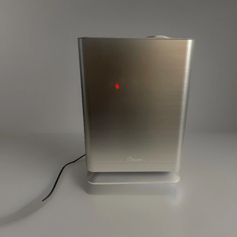 Crane 1.2 Gal. Warm & Cool Mist Top Fill Humidifier with Remote for Medium to Large Rooms up to 500 sq. ft Condition: New The perfect warm and cool mist humidifier to keep your family healthy and happy. With its large 1.2 Gal. accessible tank cleaning is so simple. Not to mention, its mist output runs for over 24-hours in a large size room and it includes an easy to use remote and humidistat. It's built in aroma try make it usable with any essential oils. Crane's premium top fill ultrasonic cool mist humidifier provides up to 500 sq. ft. of coverage and 24 hours of soothing moisture to help relieve the effects of dryness and congestion, helping you and your family to breathe easy and sleep through the night peacefully. VARIABLE SPEED SETTINGS: No matter the humidity level you would like to achieve we've got you covered, the Crane top fill cool mist humidifiers offer variable output settings, an adjustable 360° mist lid, and an included remote control, the mist output is perfect for humidifying rooms up to 500 sq. ft., which is a standard medium to large sized room. ULTRA-VIOLET IONIZING LIGHT: This humidifier is made with clean control anti-microbial material which reduces mold and bacteria growth by up to 99.96%, this unit also has a built in ultra-voilet ionizer light to sanitize the air in the humidifier and add a freshness to the mist. 1.2 GALLON TANK: The 1.2 Gal. tank fits under a standard kitchen or bathroom sink and has an easy to carry handle attached to the tank, the humidifier is equipped an aroma tray so you can add a great aroma to any room without damaging the humidifier. 24-HOUR RUN TIME: The metallic top fill humidifier runs up to 24-hours, so you don't have to worry about running it through the night, Crane's humidifier runs whisper quiet which makes it the perfect option for light sleepers, kids and especially babies, use the built-in night mode to dim all the lights and enjoy uninterrupted sleep, it also is equipped with an automatic shut-off safety feature that turns the unit off when the water runs out. EASY TO CLEAN: Crane's easy to clean humidifier design features a detachable top fill tank with a handle, which is recommended by health professionals for promoting clean humidifier habits, the top and inner tank are removable, giving you access to clean the entire base, we recommend cleaning the humidifier based on frequency of use and provide many educational resources on how to clean your humidifier.