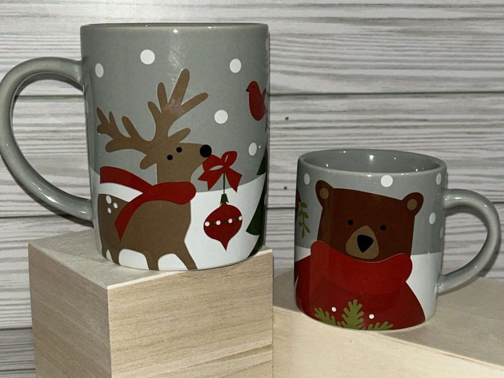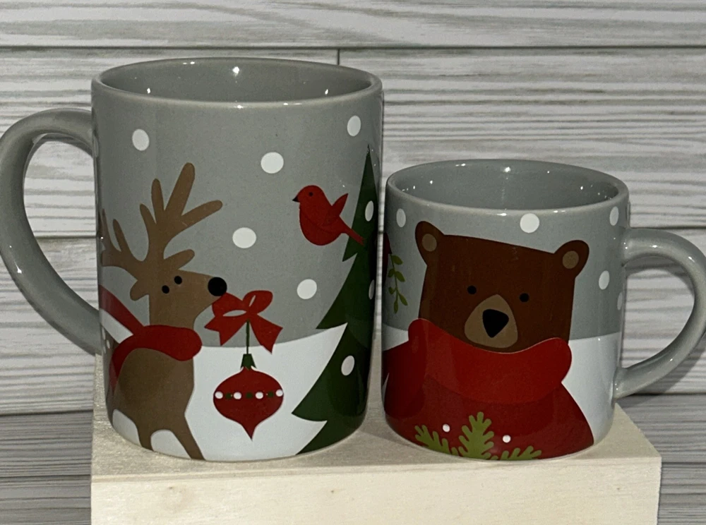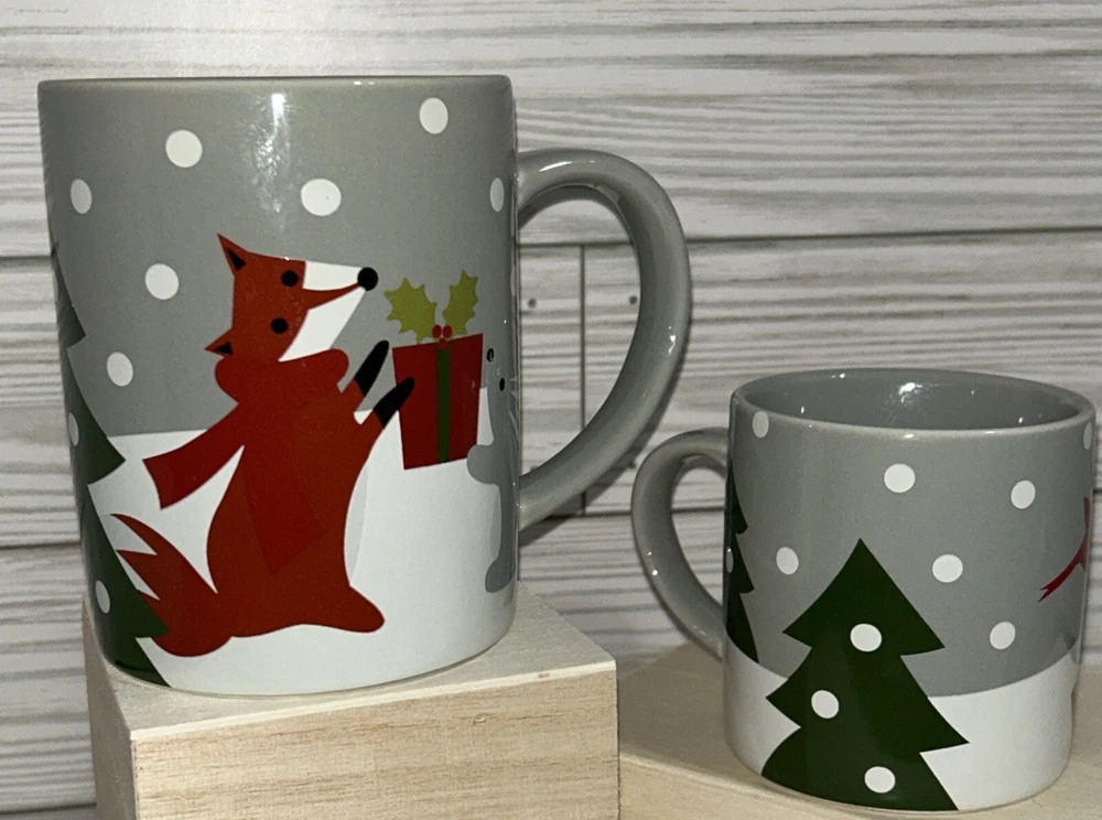 Crate & Barrel Christmas Coffee Mugs Reindeer & Fox Winter Bear By Joan Anderson 1 Adult 1 Child Bigger Cup is 4” Tall 3.5” Wide Smaller Cup is 3” Tall 2.75” Wide Great Condition No Chips Or Cracks See All Pics