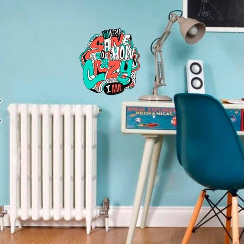 Wall Art MaterialvinylDescriptionFull color Wall Decal Decorate your home with beautiful and affordable polygonal vinyl decals for your walls. It is the newest home decor trend. It's easy to apply and really makes a room look elegant. Without much effort and cost you can decorate and style your home or any other surface. Putting up these paint-lookalike stickers, vinyl decals will completely change the way your accommodation looks. APPLICATION AREA Decals can be applied to any clean, smooth and flat surface. Put them on your walls, doors, windows - anywhere you want! Application areas: Walls, Windows, Tiles, Floors, Ceiling, Doors, Furniture, Electrical items such as refrigerator, TV, washing machine, Computers, cell phones, notebook, ipad etc., Store Front and many other surfaces. Also Free Shipping Over $49.99* Details Crazy Quote Decal, Crazy Quote Sticker, Crazy Quote Wall Decor Product Description: Wall Art Material vinyl Description Full color Wall Decal Decorate your home with beautiful and affordable polygonal vinyl decals for your walls. It is the newest home decor trend. It's easy to apply and really makes a room look elegant. Without much effort and cost you can decorate and style your home or any other surface. Putting up these paint-lookalike stickers, vinyl decals will completely change the way your accommodation looks. APPLICATION AREA Decals can be applied to any clean, smooth and flat surface. Put them on your walls, doors, windows - anywhere you want! Application areasWalls, Windows, Tiles, Floors, Ceiling, Doors, Furniture, Electrical items such as refrigerator, TV, washing machine, Computers, cell phones, notebook, ipad etc., Store Front and many other surfaces. Also this graphic can be applied to cars. It is much faster, cleaner and easier than painting. Quote Crazy Decal, Quote Crazy Sticker, Quote Crazy Wall decal, Quote Crazy Modern wall art , Quote Crazy Decor, Quote Crazy Wall Decal